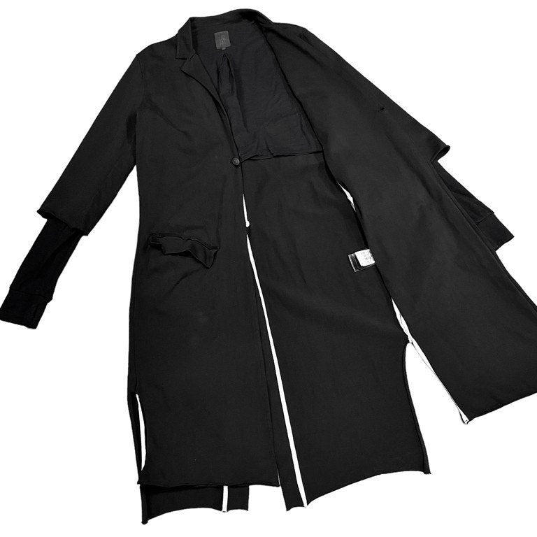 コットンジャージーレイヤードサムホールスリーブカットオフロングコート ジャケット ブルゾン