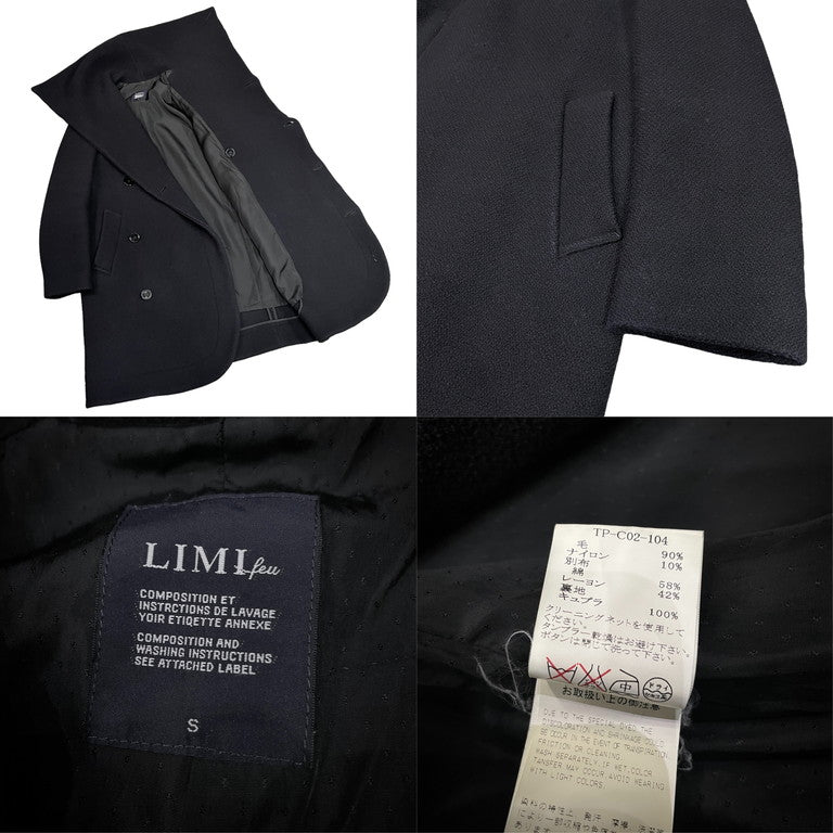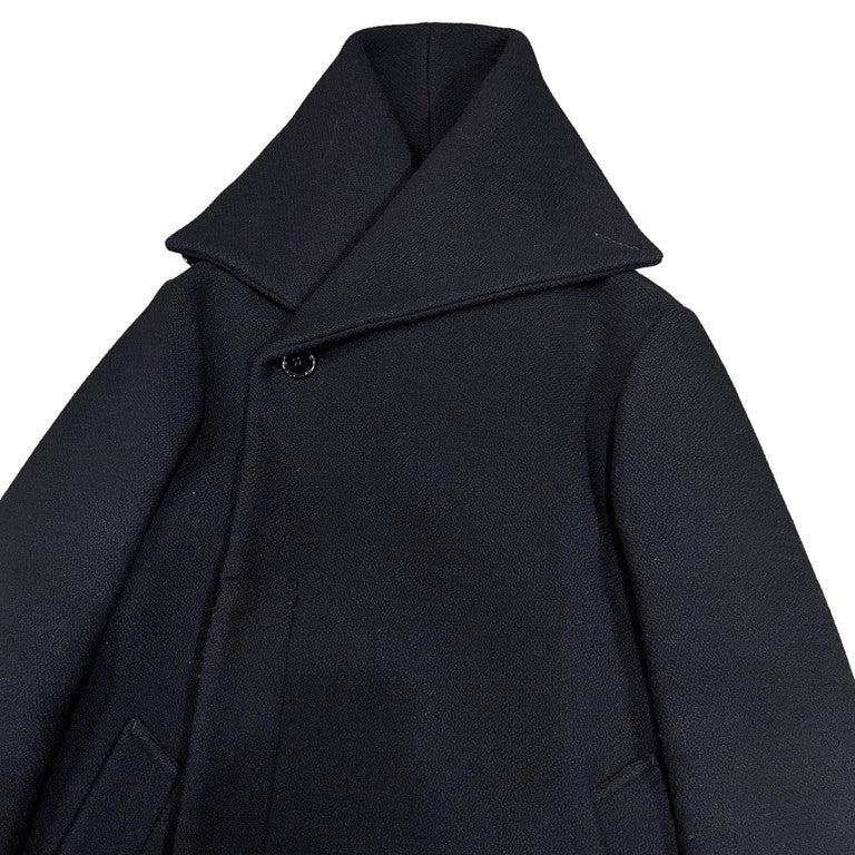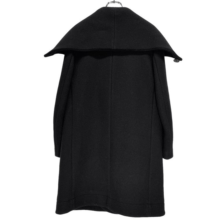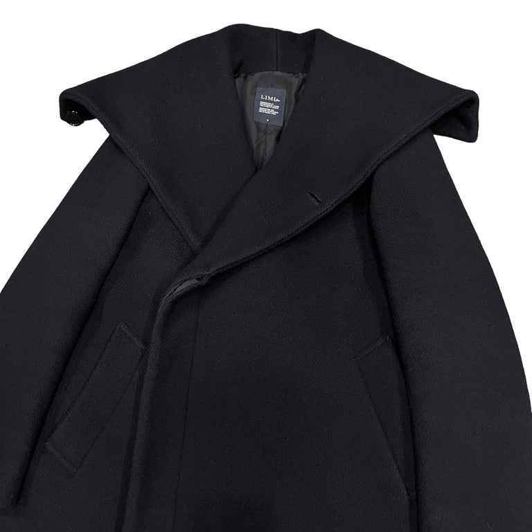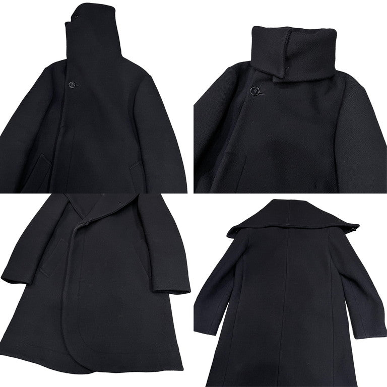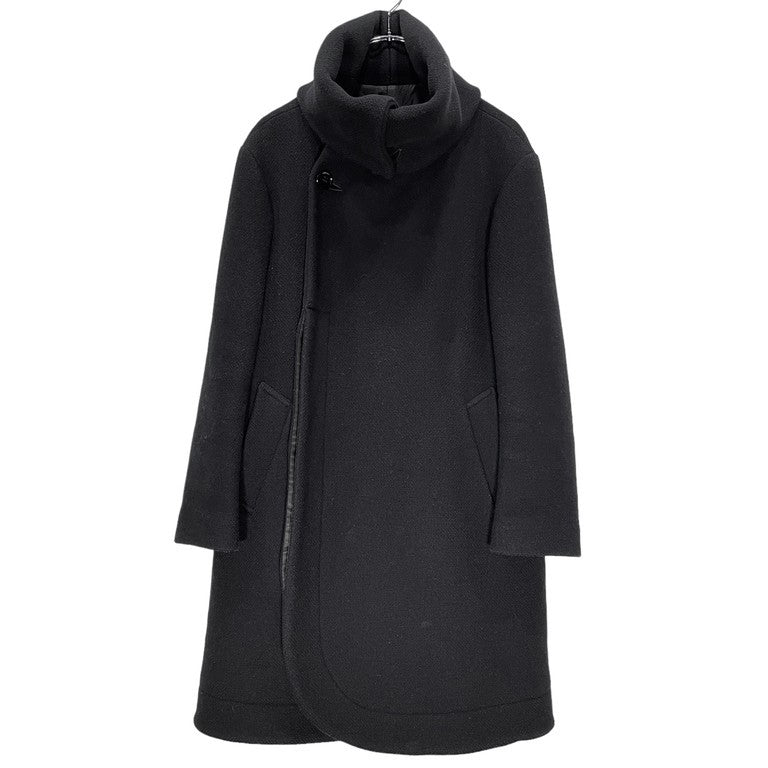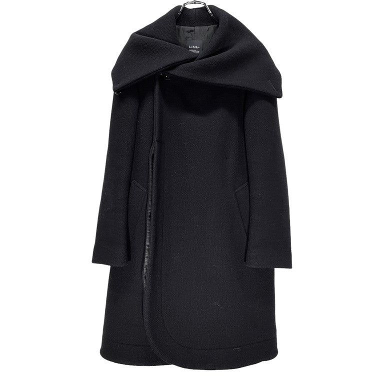 LIMI feu ウールセーラーカラーロングコートです。ウール・ナイロン混紡の厚手の生地が使用されたコート。広く取られた襟が特徴的です。上部のボタンを留めず襟を開くとセーラーカラーに、ボタンを留めるとハイネック仕様になり、様々な着こなしをお楽しみいただけます。上部のボタン以外は比翼仕立てになっており、全体的に装飾の少ないミニマルなデザインに。シンプルで幅広いスタイルに合わせてお使いいただけるアイテムです。若干の使用感はあるかと思いますが、目立った傷や汚れもなくまだまだお使いいただけます。