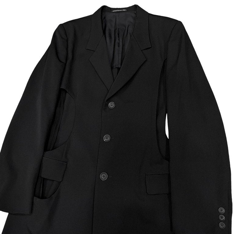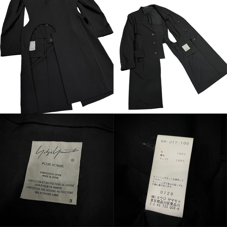19SS ウールギャバジンカットアウトロングコート カッティング ジャケット ブルゾン 穴あきロングJKT-A 定価187,000円 LOOK4 ヨウジヤマモトプールオム メンズ