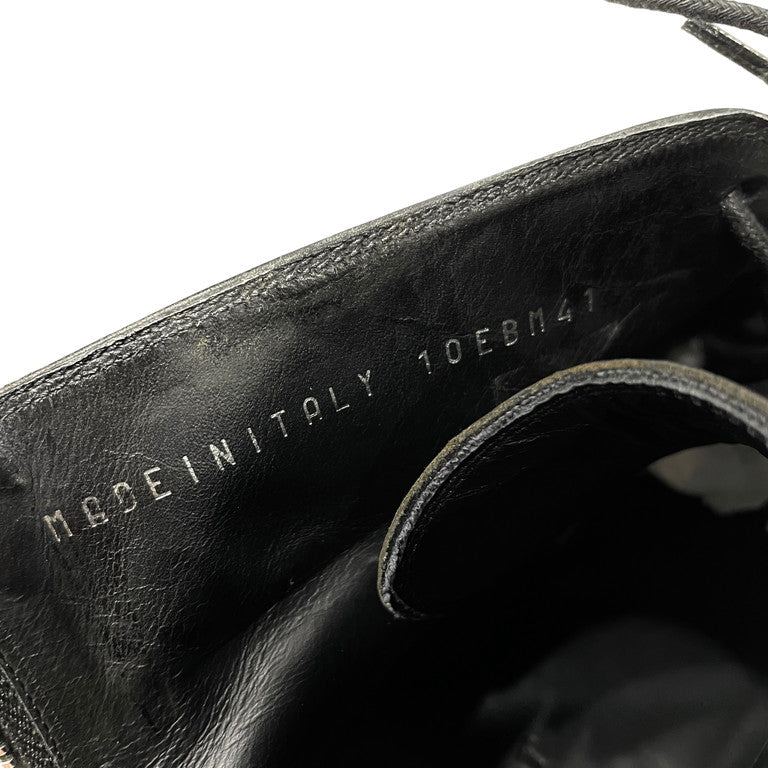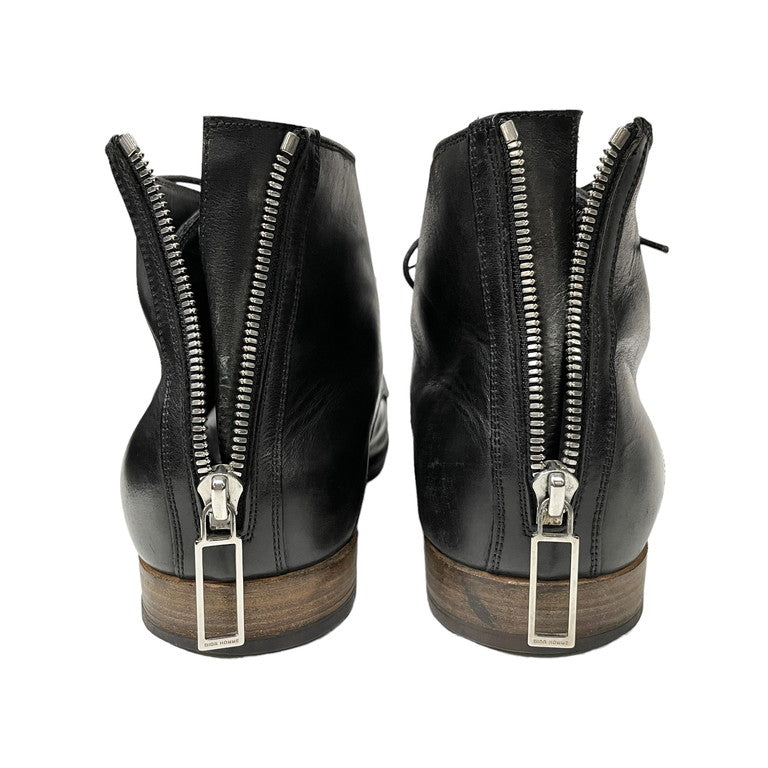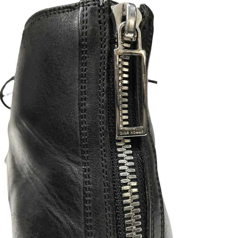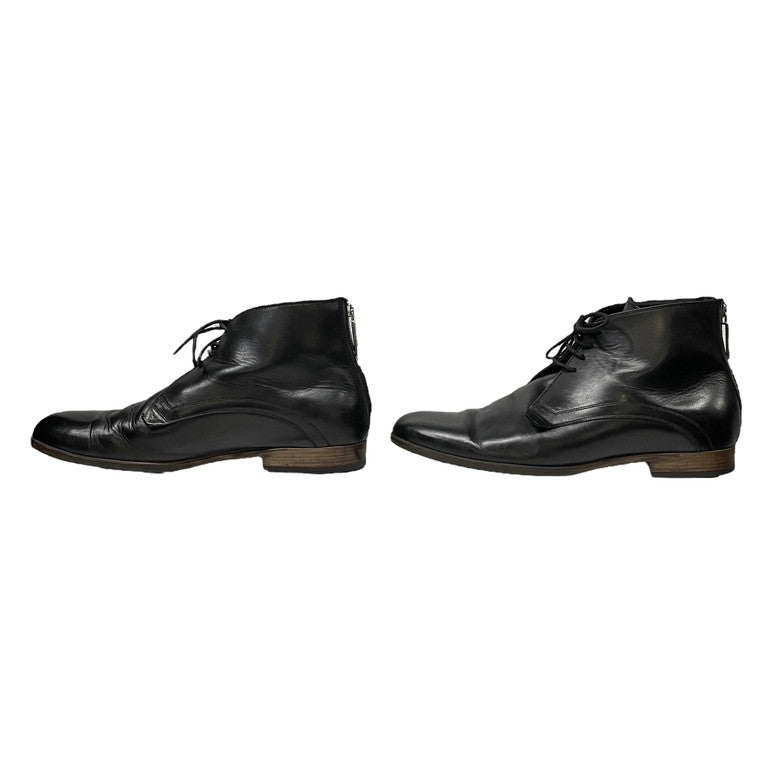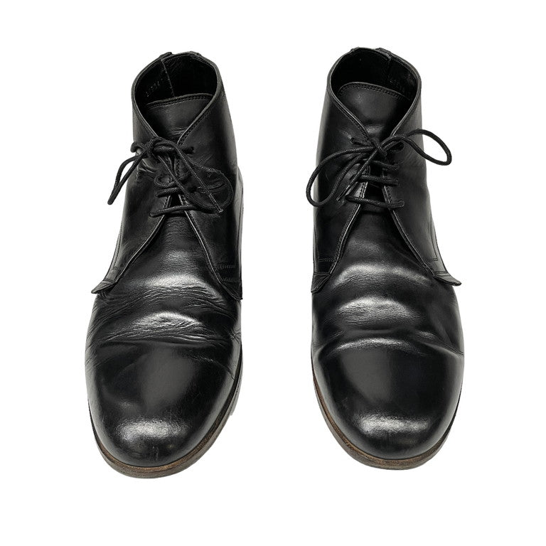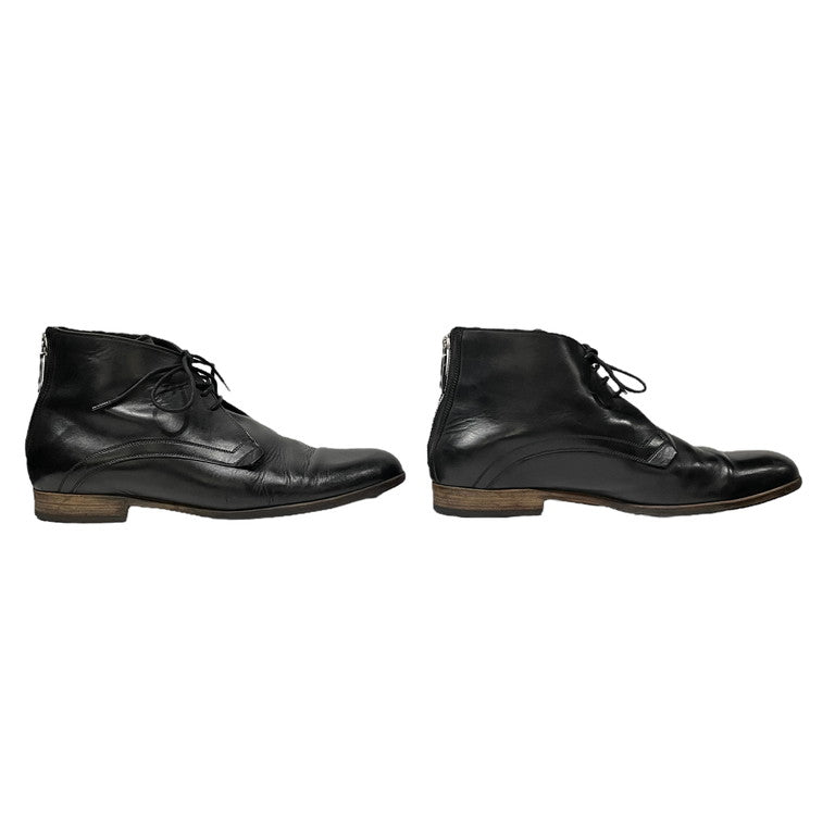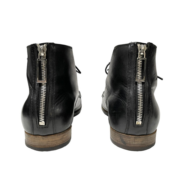 Dior Homme by KRIS VAN ASSCHE 10SS カーフレザーバックジップレースアップチャッカブーツです。クリスヴァンアッシュがディレクションを務めていた時期のモデル。カーフレザーが使用されたチャッカブーツです。ディオールオムらしい、やや甲が低めでメリハリのあるシルエット、バックにあしらわれた着脱用バックジップが特徴的。ジッパーの持ち手にもオリジナルのものが採用されています。表記サイズは「41」で、日本サイズ約26.5cm前後。アッパーの履き皺や僅かな小傷等、若干の使用感はあるかと思いますが、ソールの減りはほぼなくまだまだお使いいただけます。