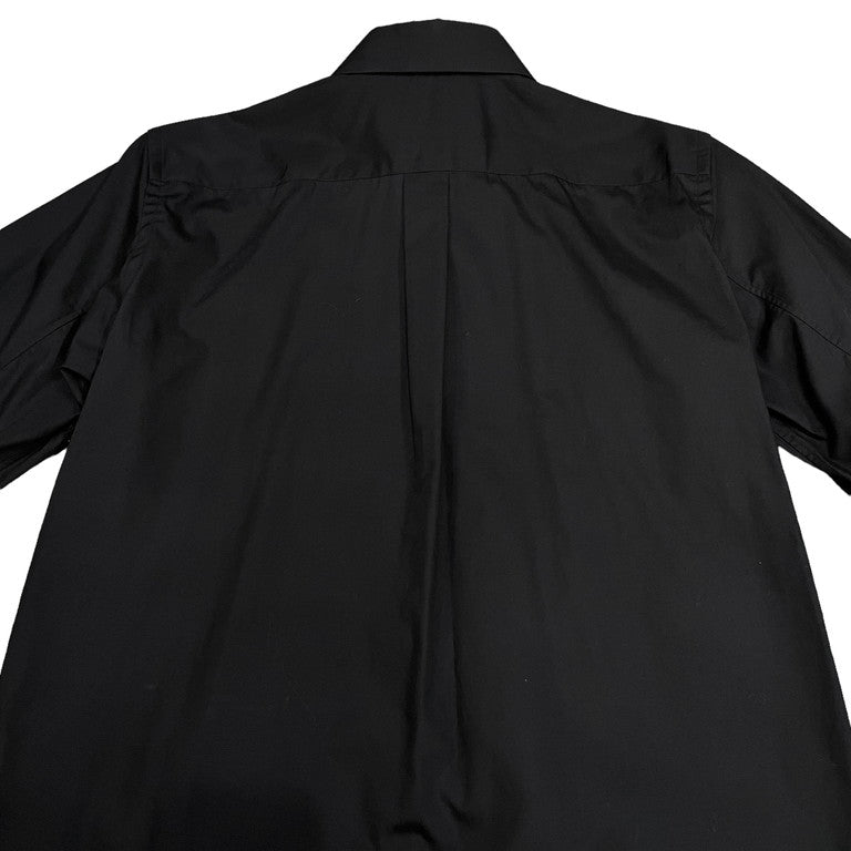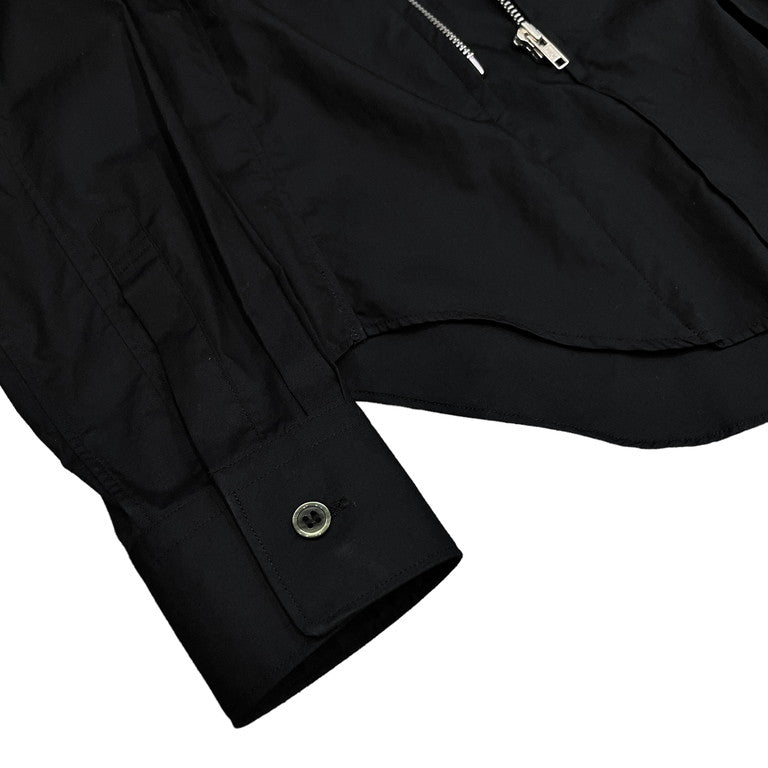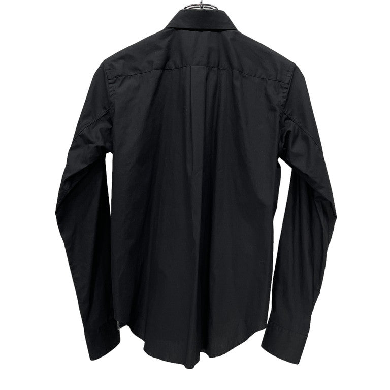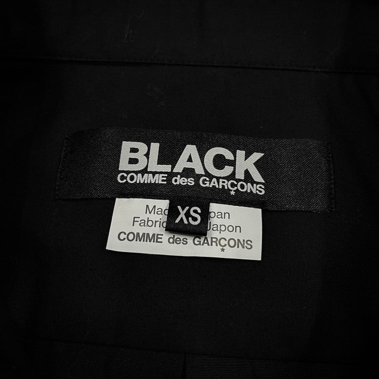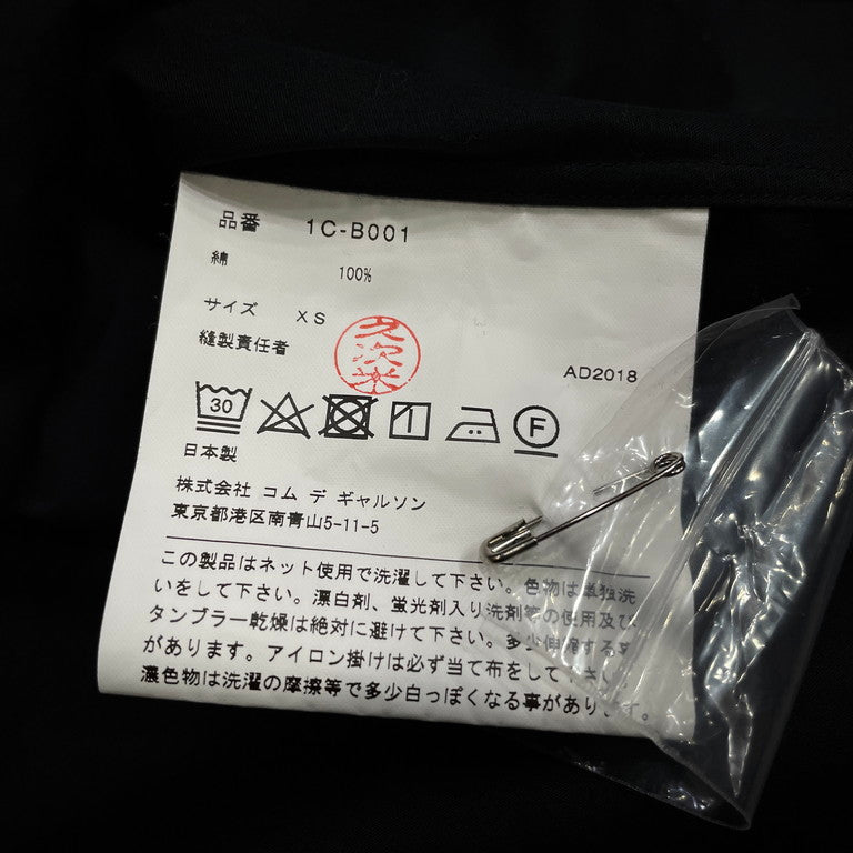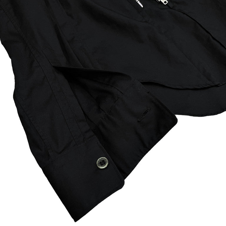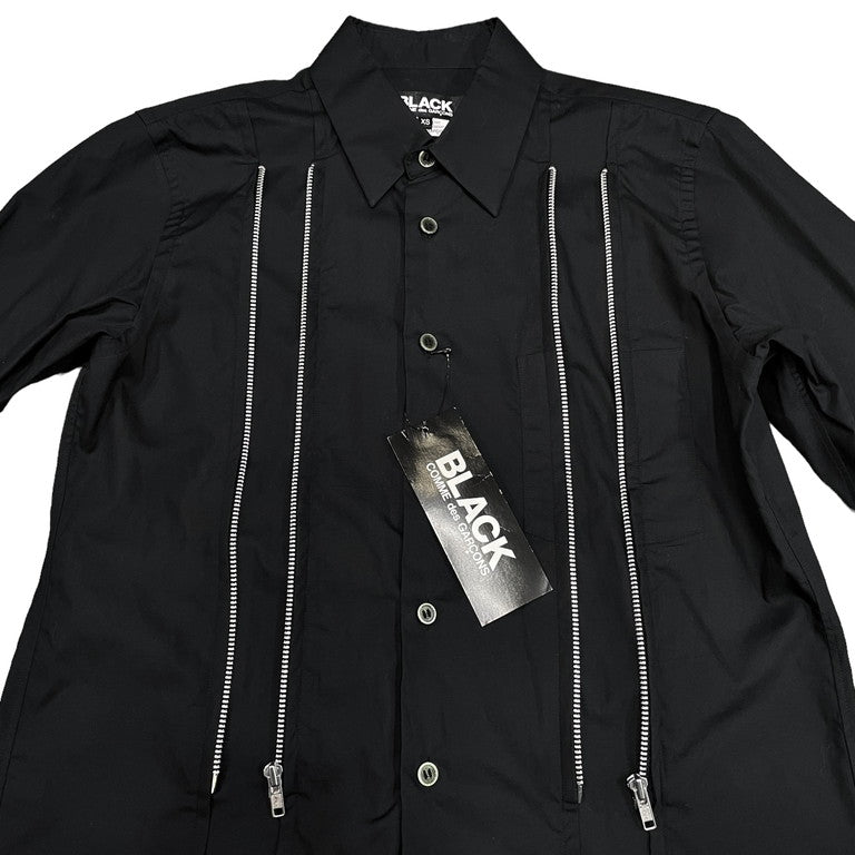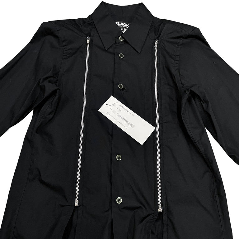 BLACK COMME des GARCONS 19SS コットンブロードフロントジップデザインシャツです。コットンブロード生地が使用されたシャツのフロントに、ジップがあしらわれたデザイン。ジッパーは実際に開閉が可能となっており、ジップを閉めることで胸元にダーツを入れたようなシルエットに変化します。胸にはポケットが配されていますが、ジップの務歯と重なった位置にあるため、ペン程度の小物であれば収納可能となっています。定価27,500円のアイテム。性別関係なくお使いいただけるアイテムです。未使用タグ付きでの入荷です。