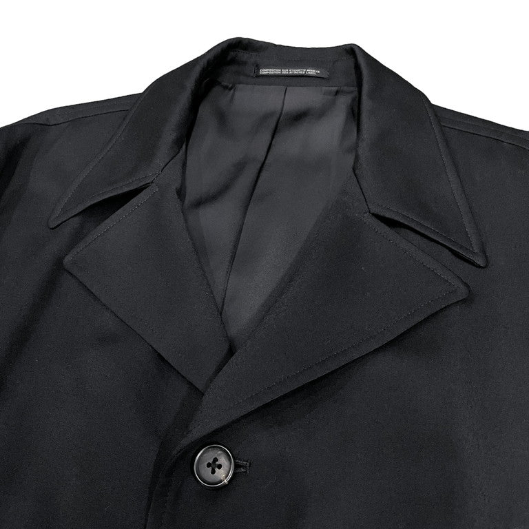 Yohji Yamamoto Pour Homme 95AW ウールドスキンロングコートです、1995AW 鹿鳴館期のアイテム。ウールドスキン生地が使用されたロングコートです。ベーシックなデザインでヨウジヤマモトのスタイルには必要不可欠なアイテム。ウールギャバジンやタキシードクロスと比較し、やや厚手の生地となっており重厚感のある一着に仕上がっています。両サイドには深めのスラッシュポケットを配備。分量感のある身幅等、1990sならではの一着に仕上がっています。左腰付近に生地の擦れがございますが、それ以外は目立った傷や汚れもなくまだまだお使いいただけます。