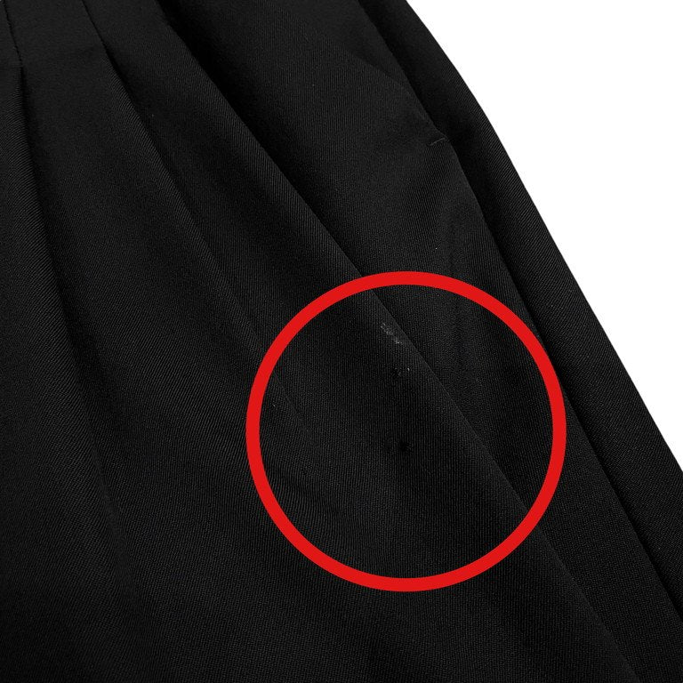 両裾に薄汚れがあり、左腿付近に小穴がございます。それ以外は目立った傷や汚れもなくまだまだお使いいただけます。