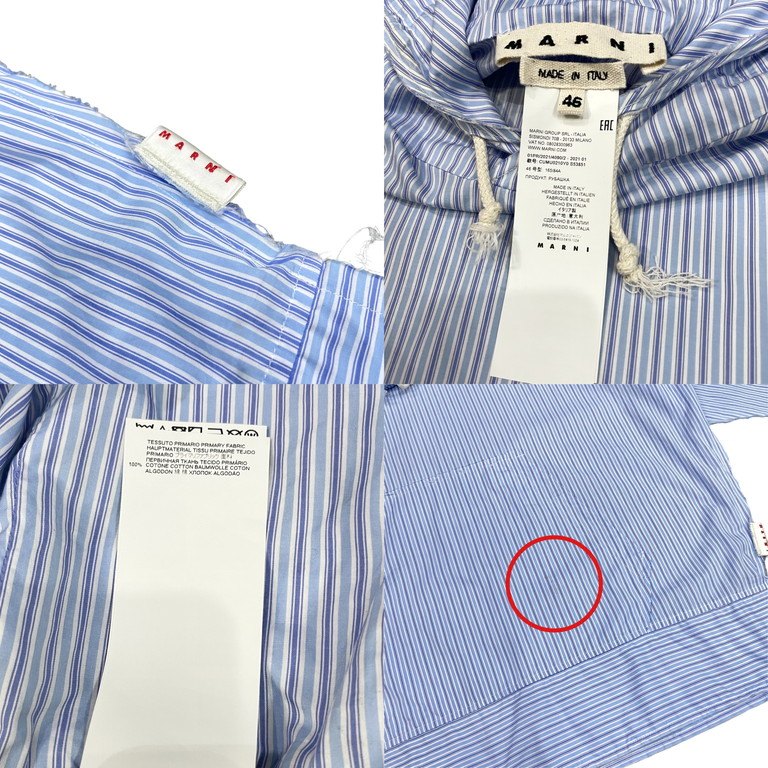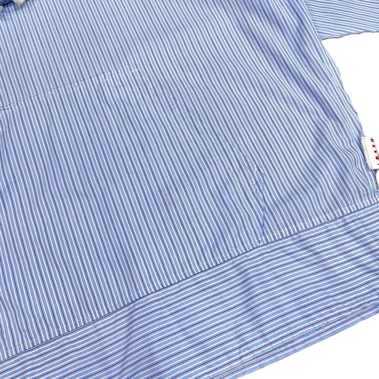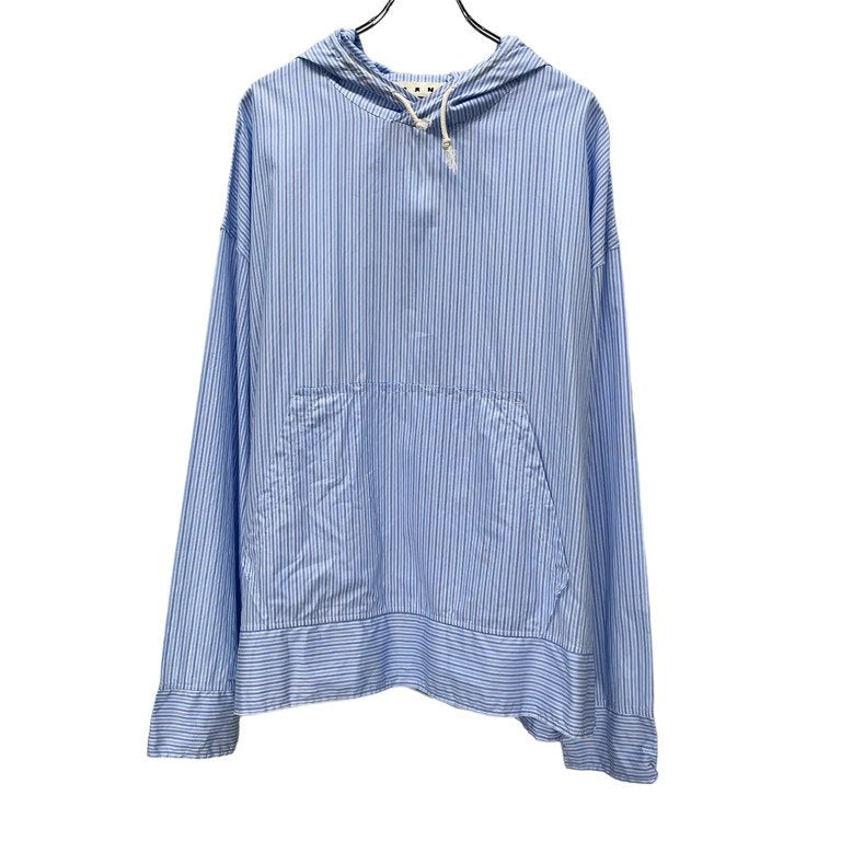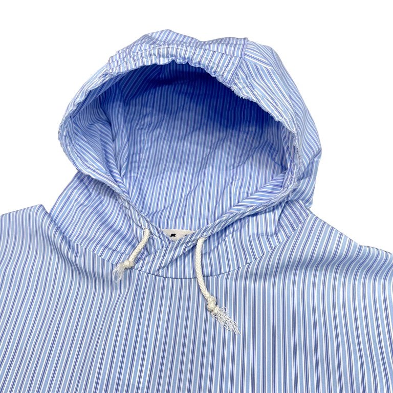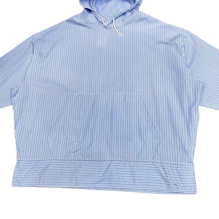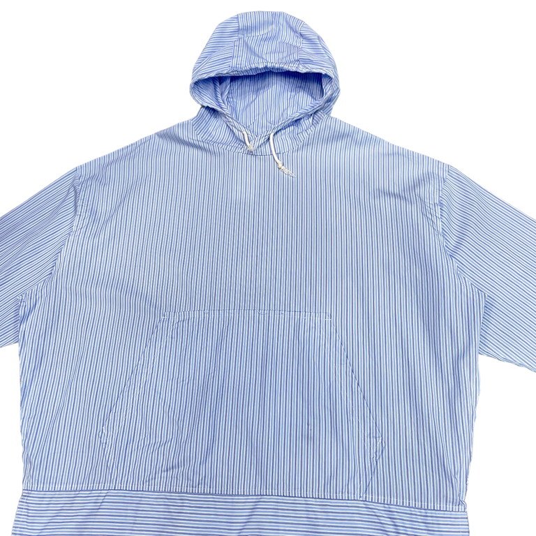 21SS コットンブロードカットオフオーバーサイズフーデッドストライプシャツ パーカー 裁ち切り 切りっぱなし フード フーディ