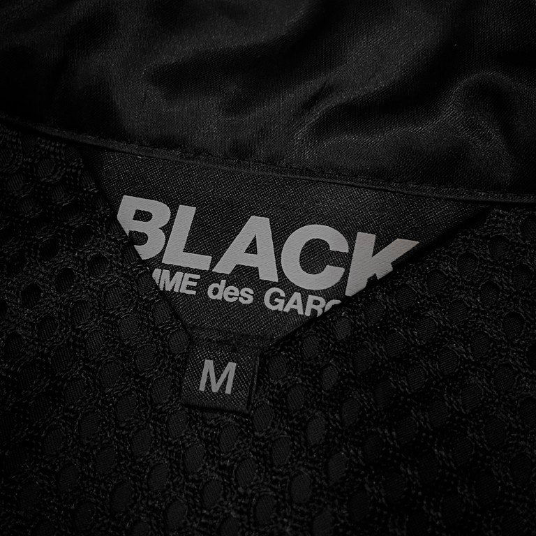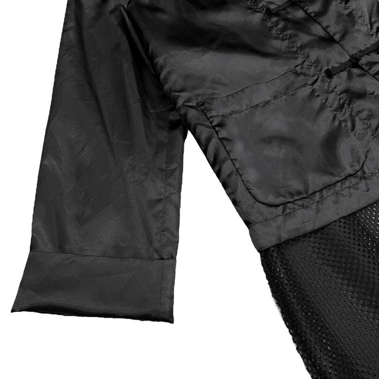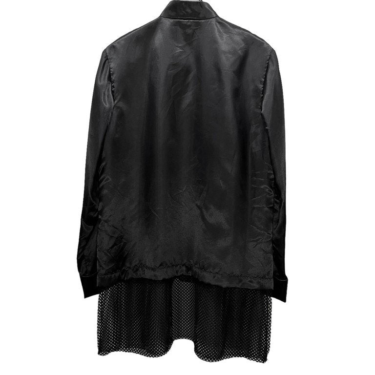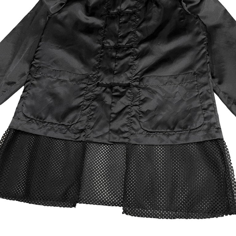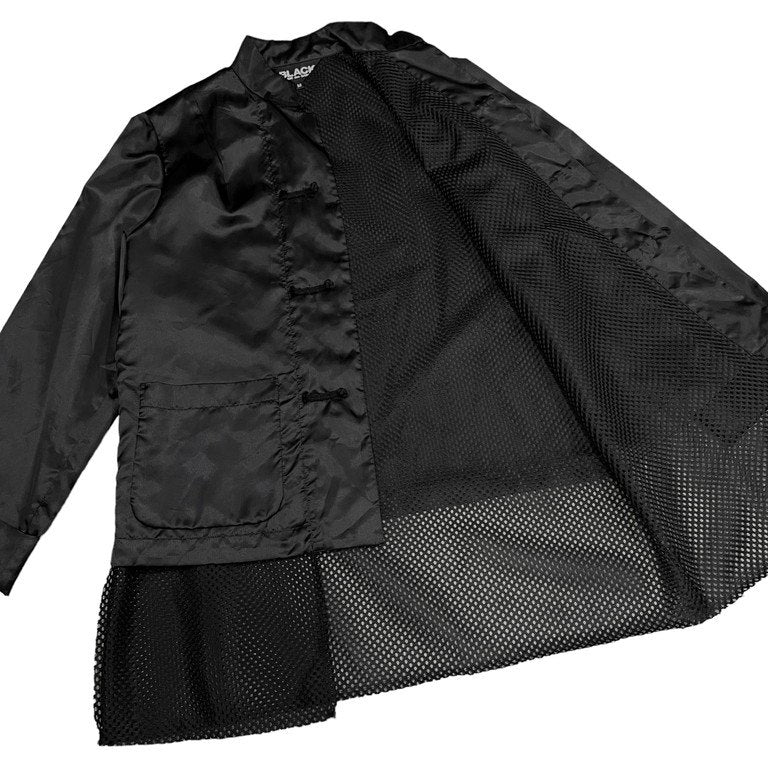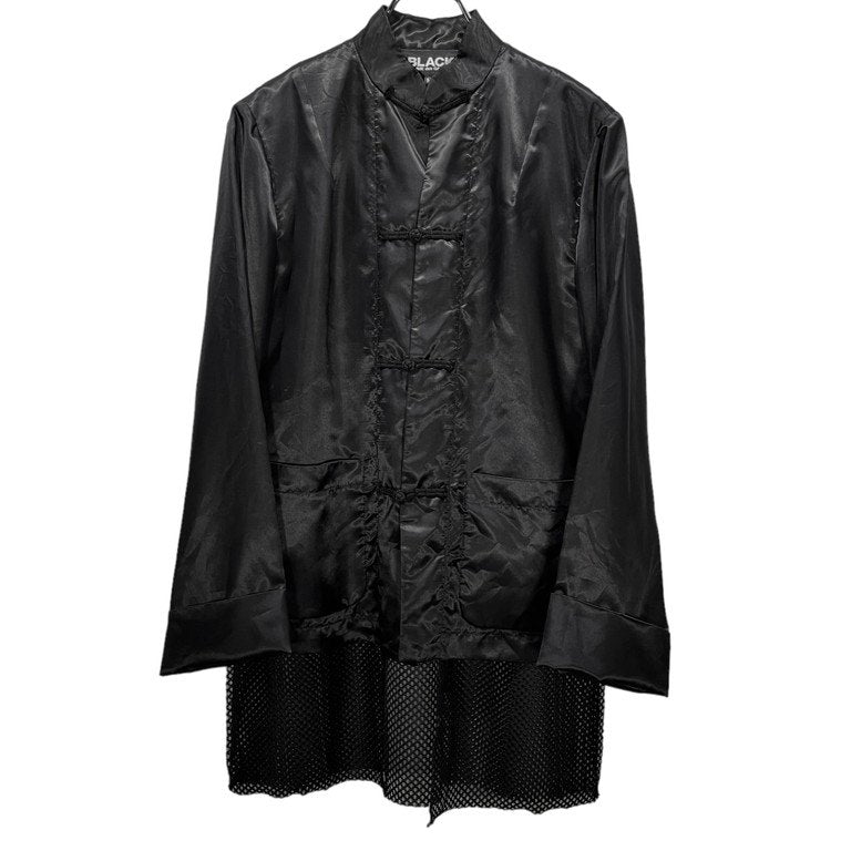 18AW ポリエステルサテンメッシュレイヤードカンフージャケット チャイナボタン 釈迦ボタン シャツ コート ブラック コムデギャルソン メンズ レディース ユニセックス