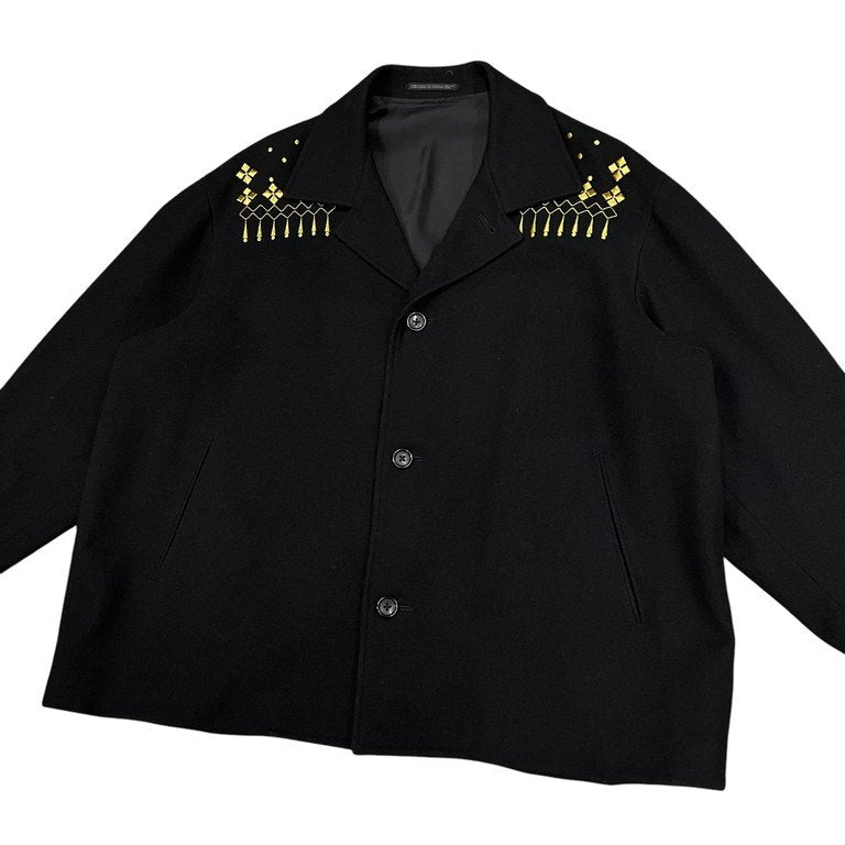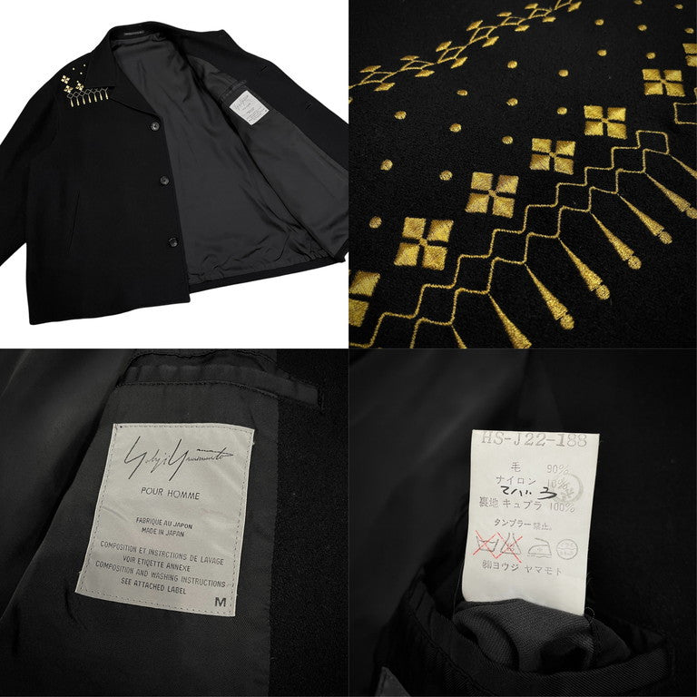 92AW 金刺繍ウールオーバーサイズジャケット ハーフコート ブルゾン アウター Archive Vintage 90s 名作 ヨウジヤマモトプールオム メンズ
