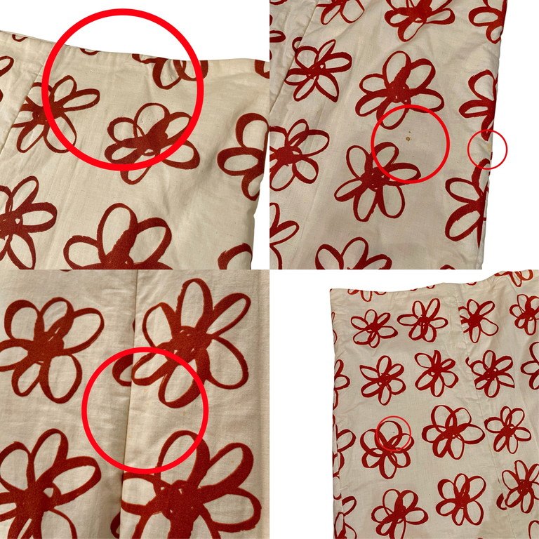 左膝付近などに薄汚れ、裾付近に薄汚れなどがございますが、その他に大きく目立った傷や汚れ、破れもなくまだまだお使いいただけます。