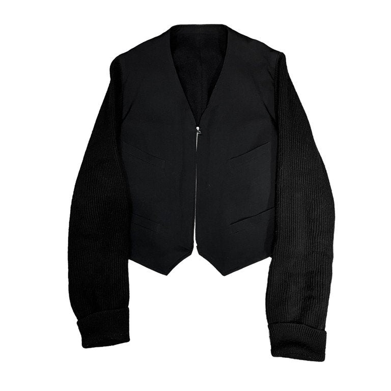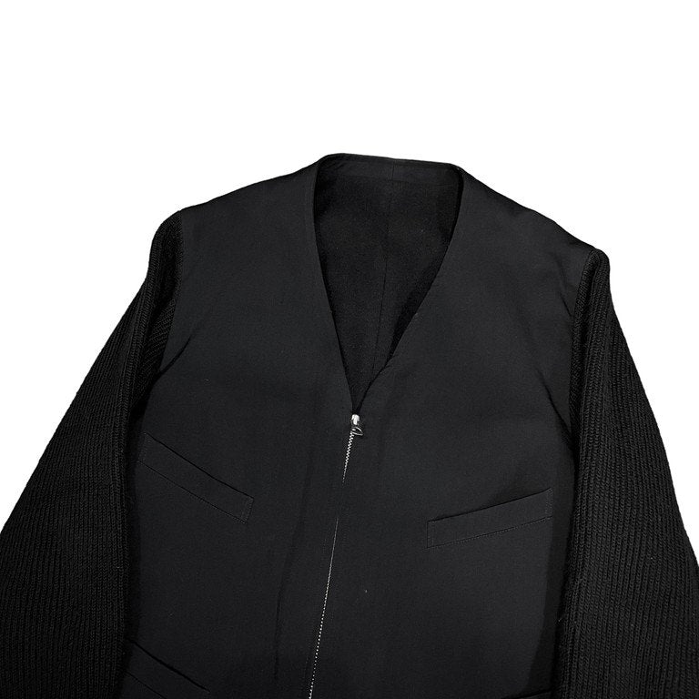 ウールギャバジン袖ニットドッキングジップアップベストジャケット ブルゾン Archive 90s