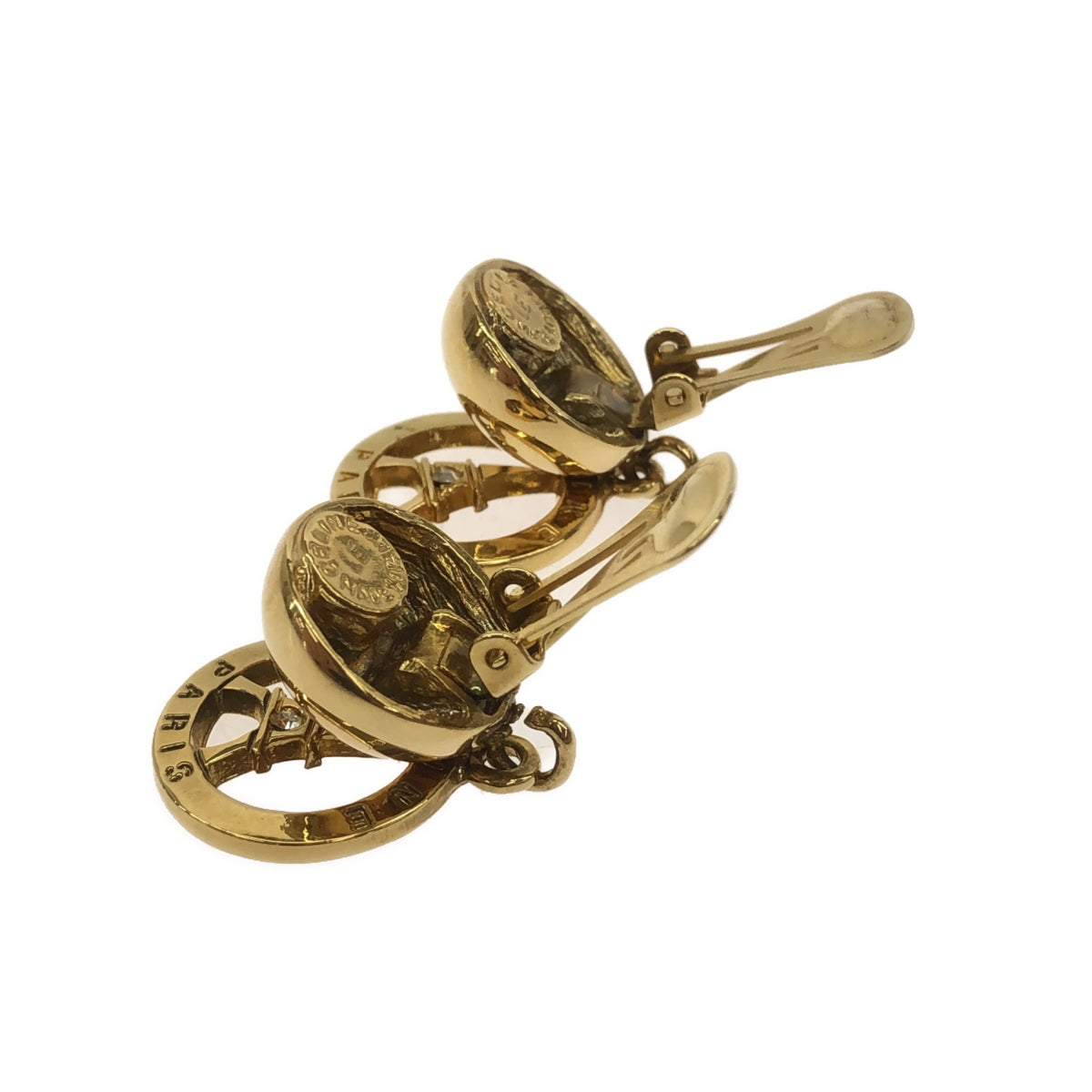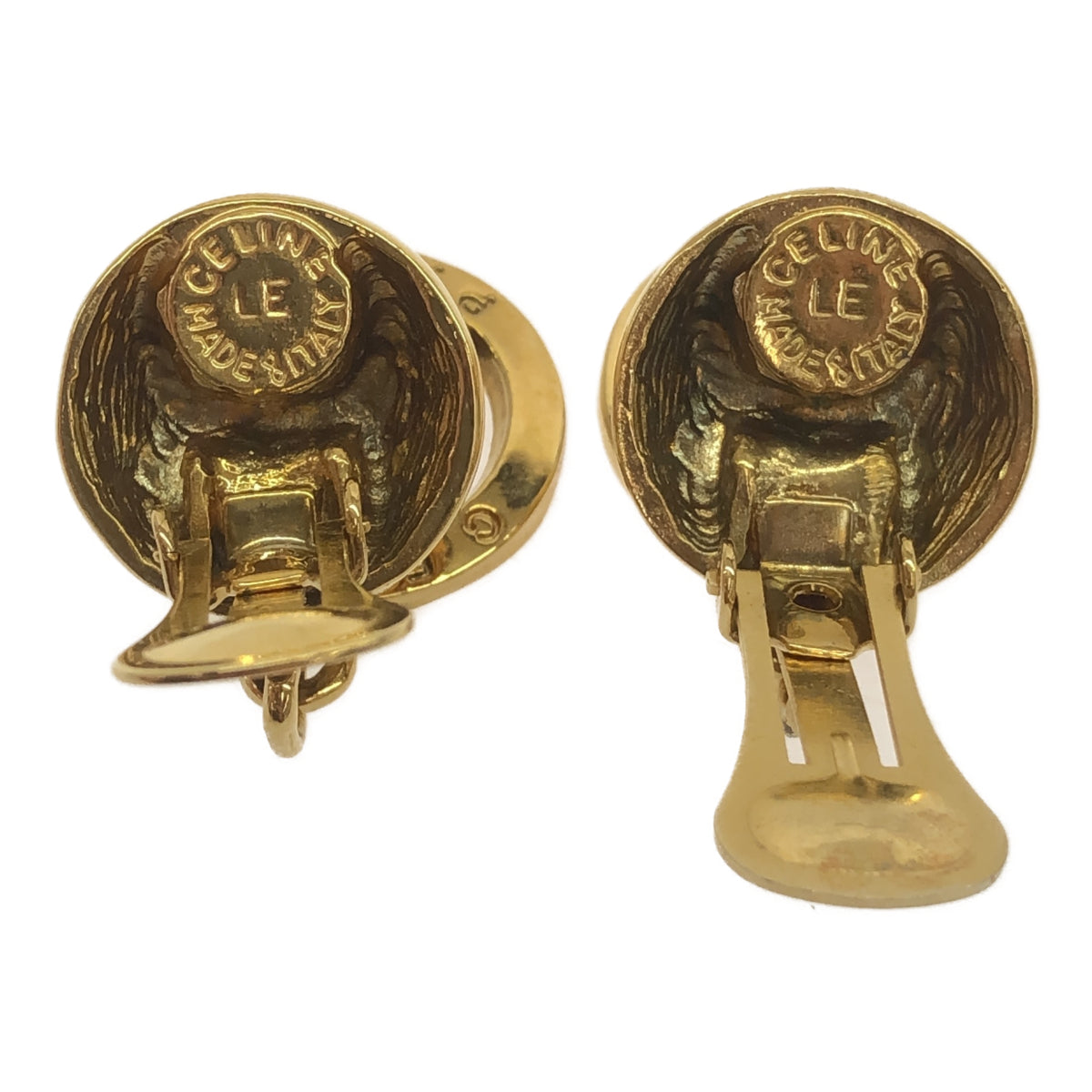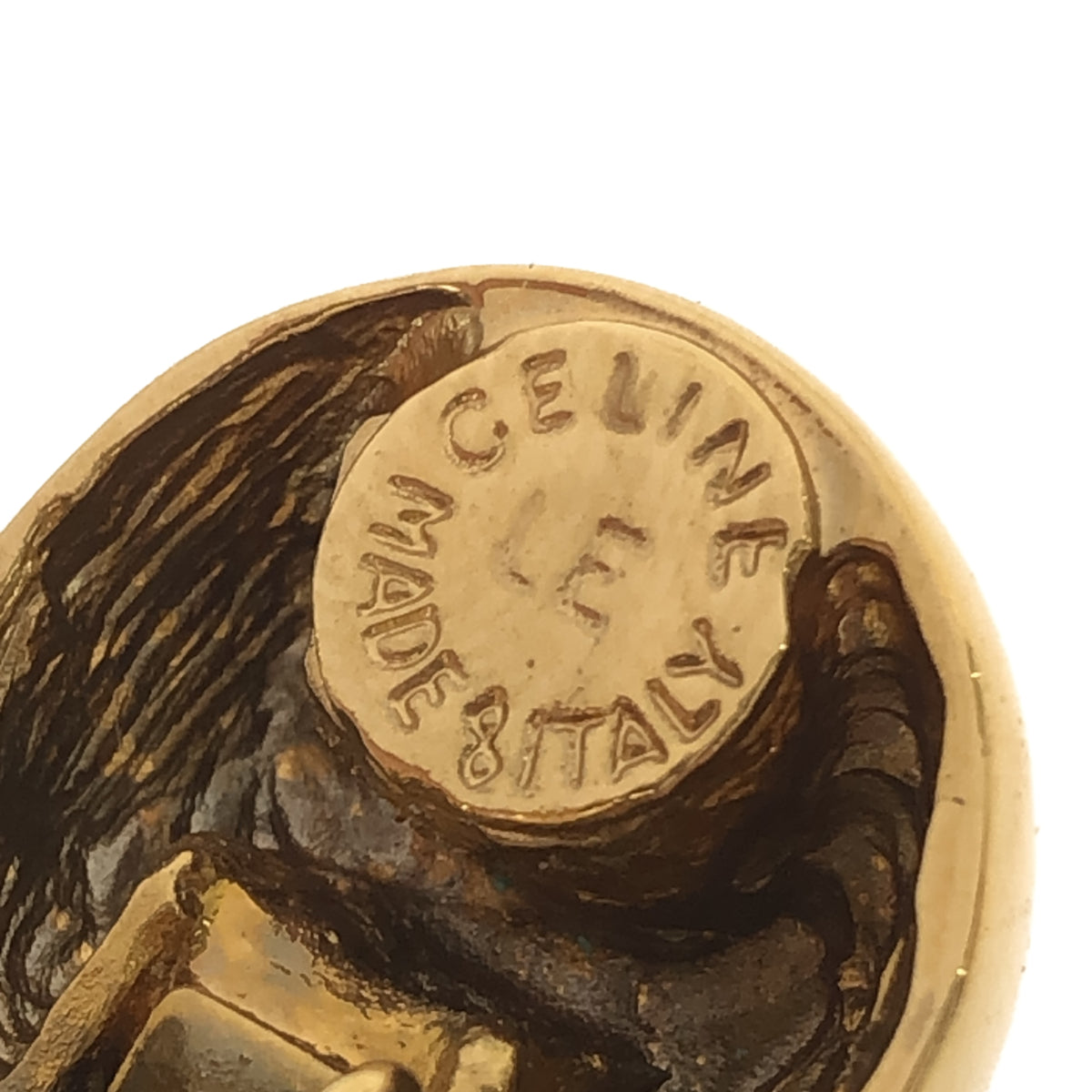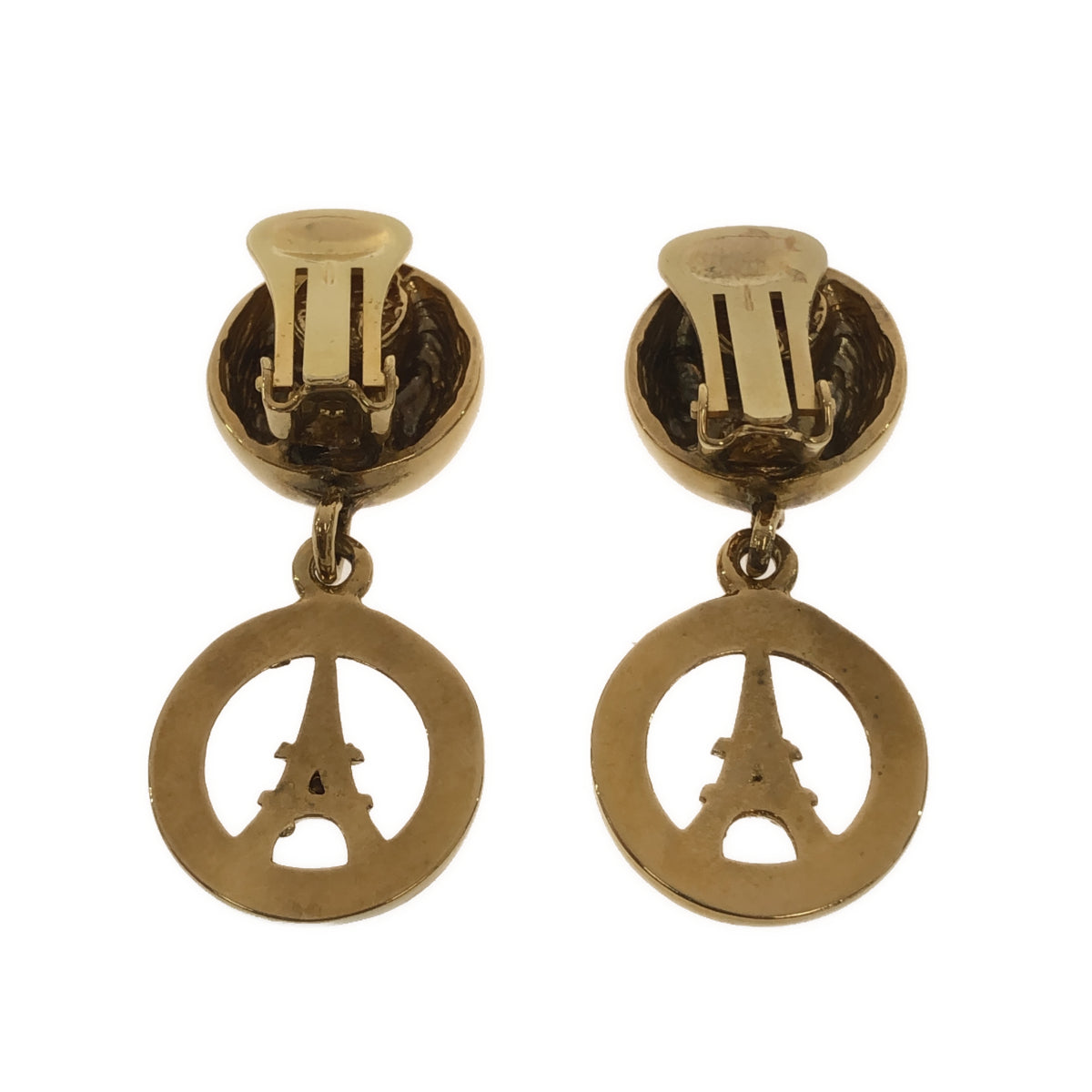ゴールドカラーが目を引く、セリーヌのエッフェル塔イヤリングです。メッキ素材を使用し、気軽に身に着けられるデザインとなっています。エッフェル塔モチーフは、遊び心がありながらも上品な印象を与えます。普段使いからちょっとしたお出かけまで、様々なシーンで活躍してくれるでしょう。状態はCランクで全体的に使用感があるのと小傷とくすみがありますが、そのデザイン性の高さから、長く愛用できるアイテムです。