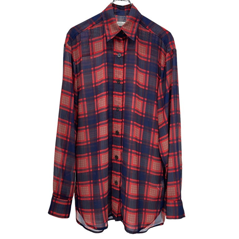 20SS ポリエステルシースルーオーバーサイズチェックシャツ ブラウス トップス ビッグシルエット ドリスヴァンノッテン レディース メンズ ユニセックス
