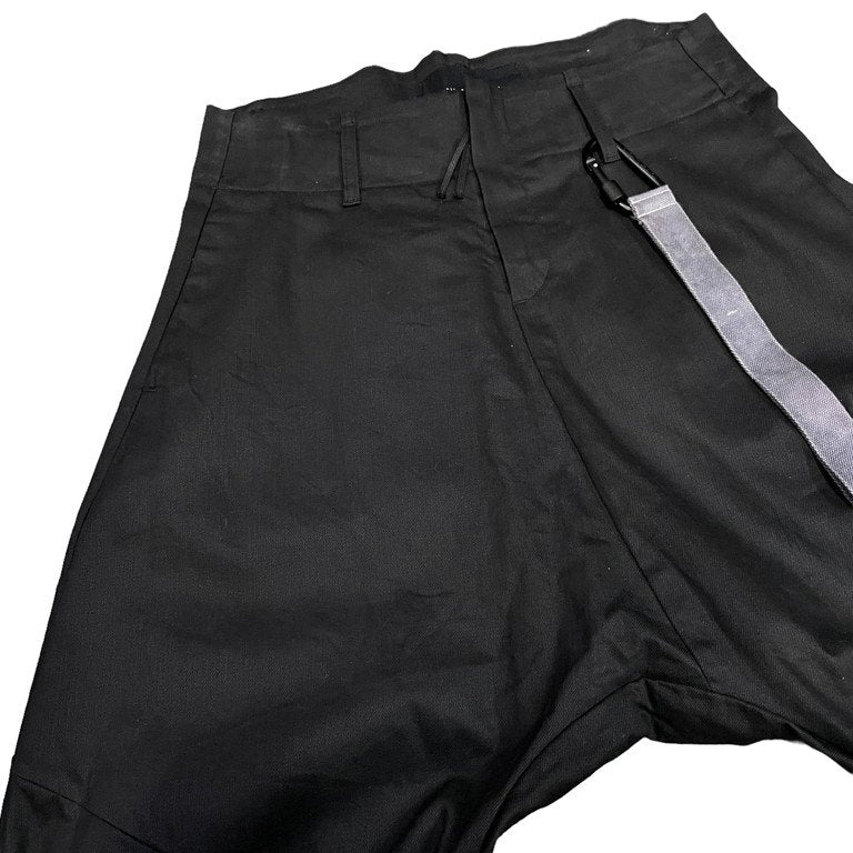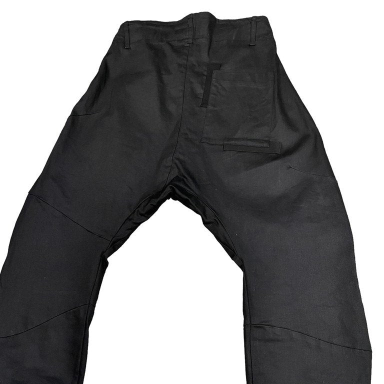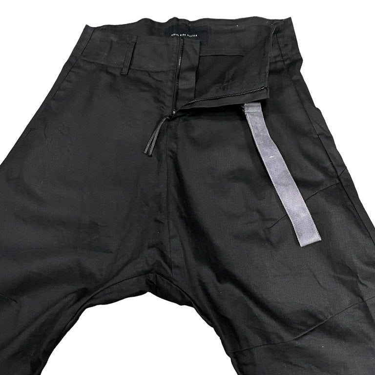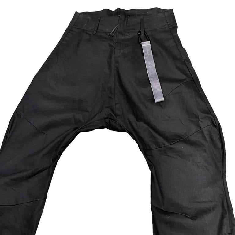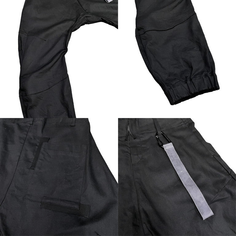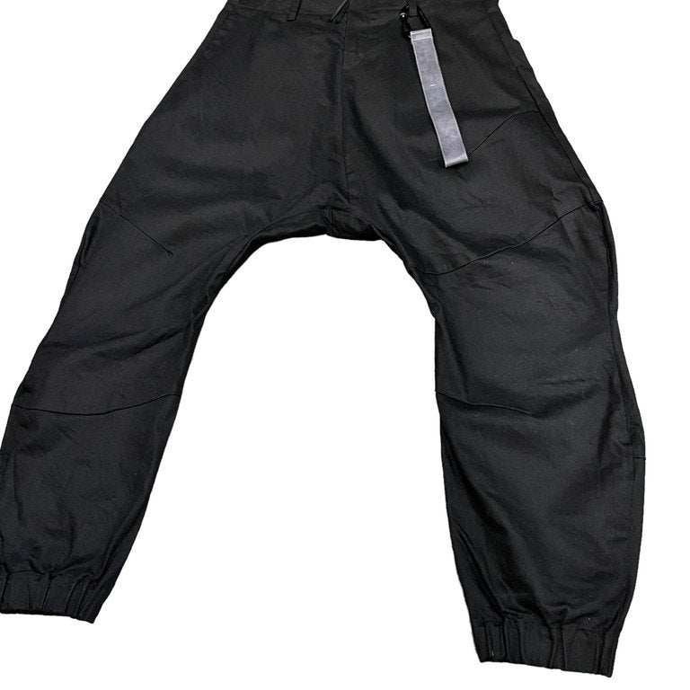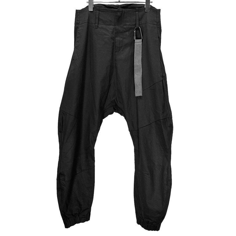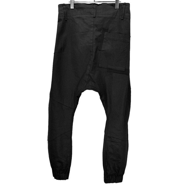 ブラックデニムコーティングアシンメトリーパターンドロップクロッチジョガーパンツ サルエル