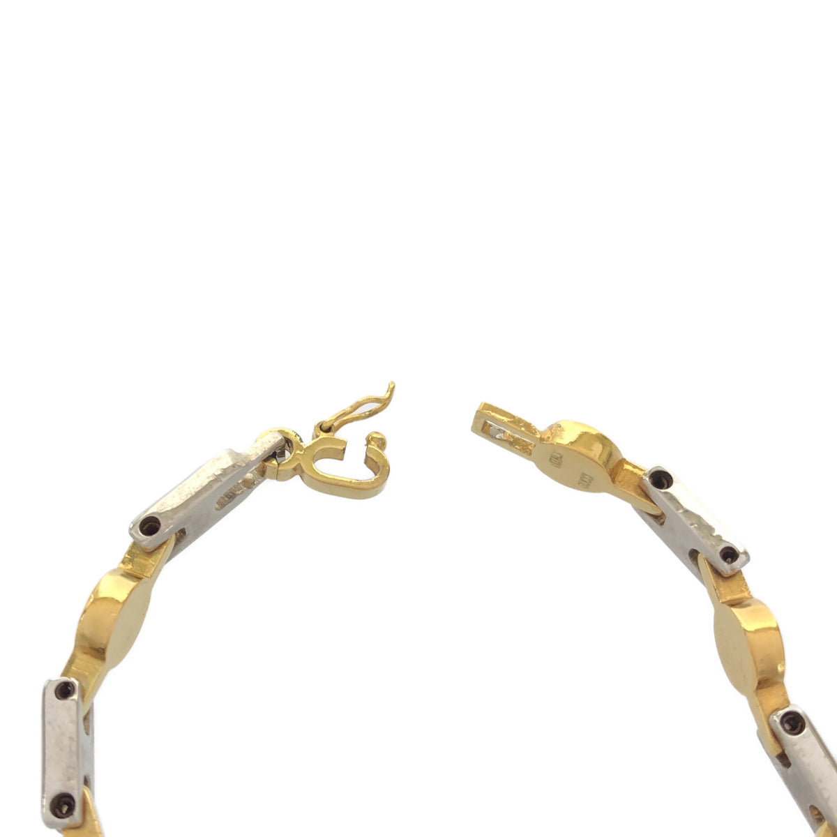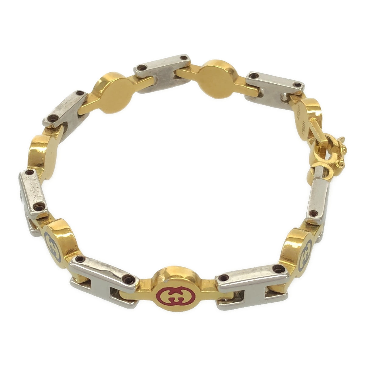 ゴールドカラーが印象的なブレスレットです。生産はイタリアで行われており、メッキ素材を使用しています。普段の装いにプラスするだけで、ワンランク上のお洒落を楽しめます。状態ランクはCとなっており、全体的に使用感があり、小傷とくすみと特に内側が汚れがありますが、その分お求めやすい価格となっております。イタリア製のアクセサリーを気軽に試してみたい方にもおすすめです。
