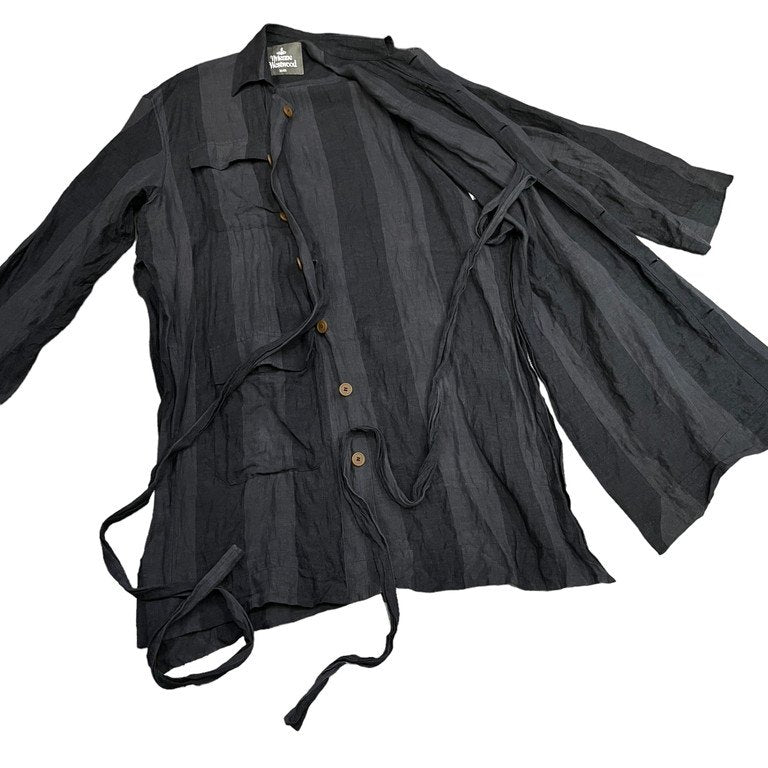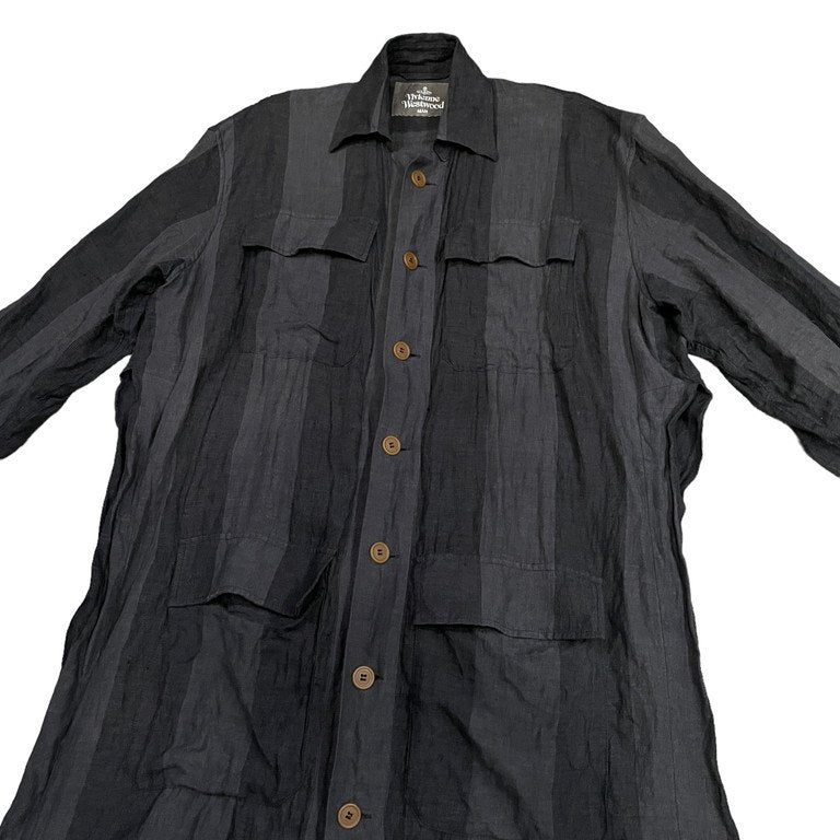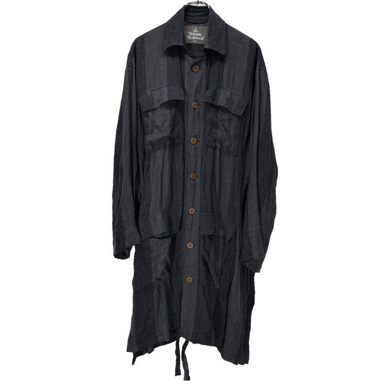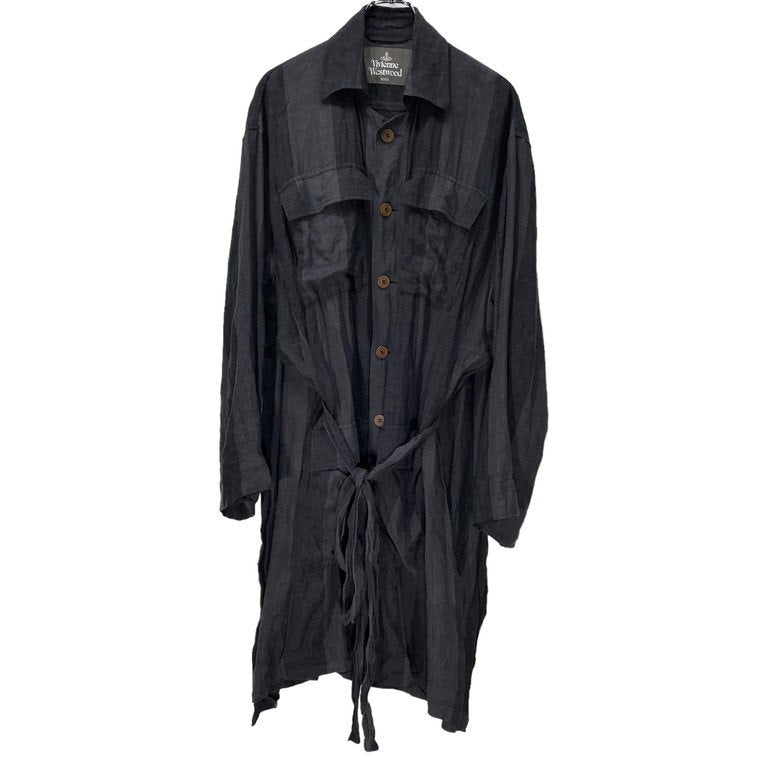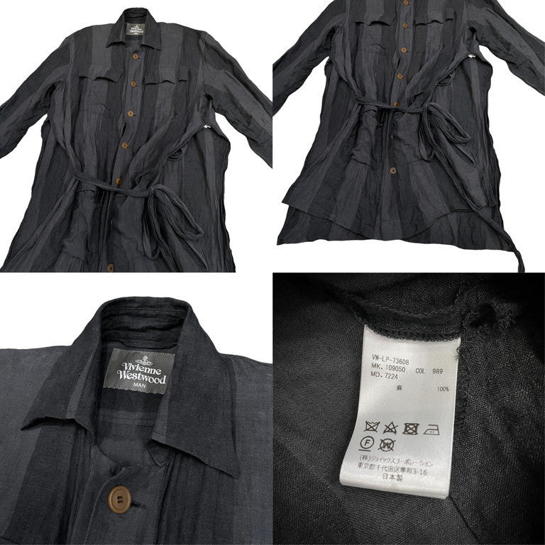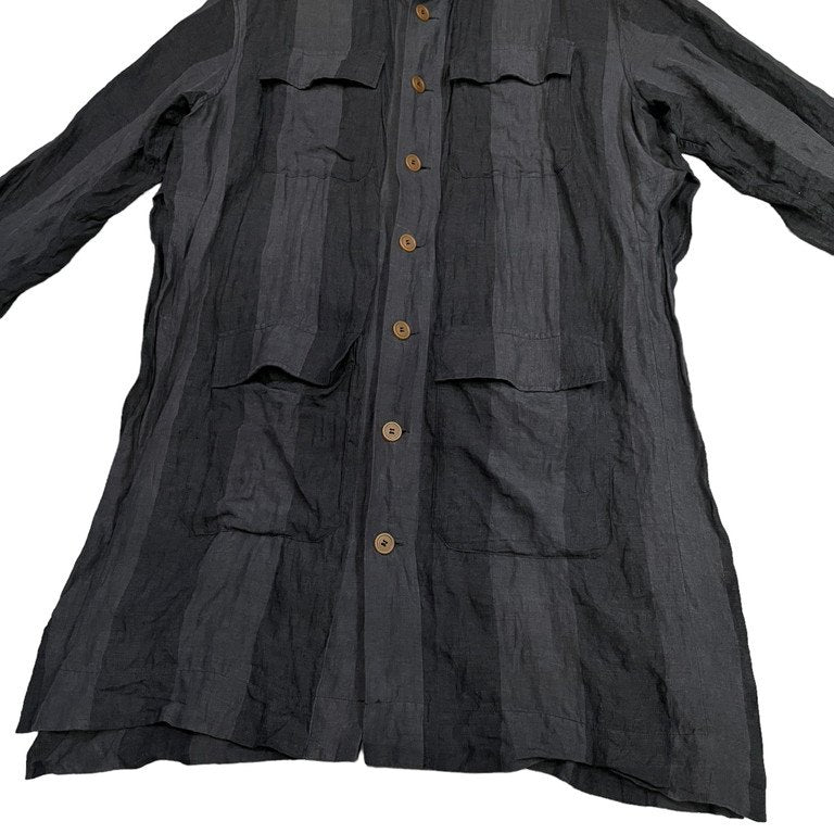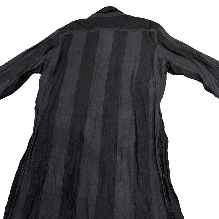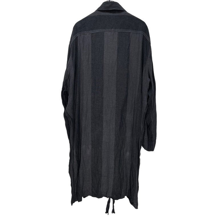 20SS リネンストライプベルテッドロングコート