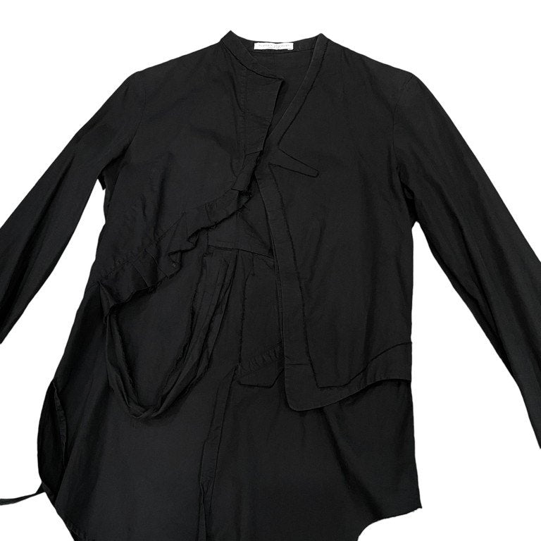 コットンブロード再構築ノーカラーカットオフアシンメトリーシャツ ブラウス トップス Archive 90s 00s フセインチャラヤン レディース