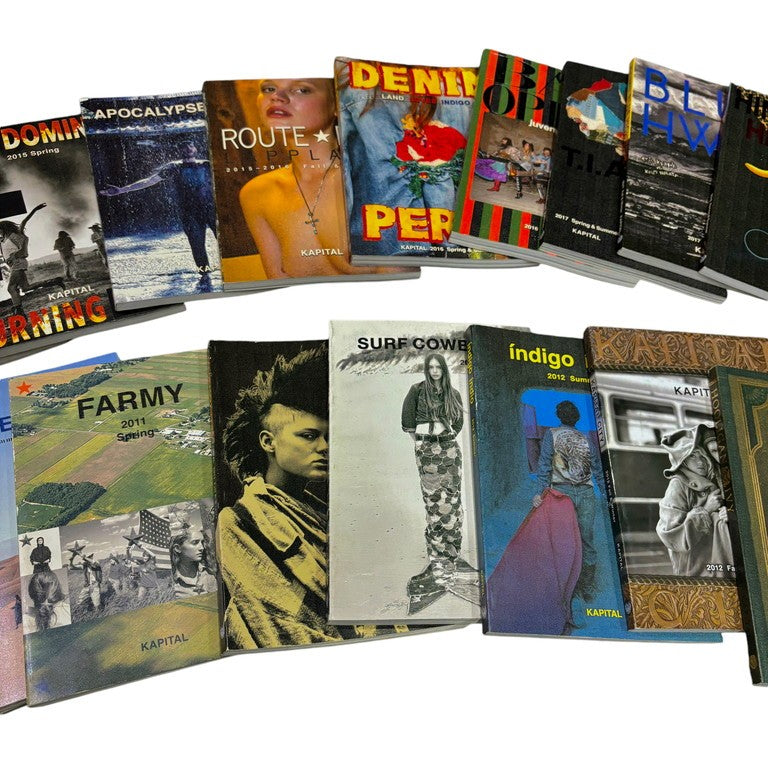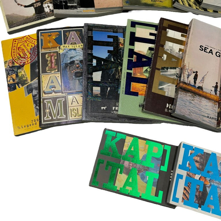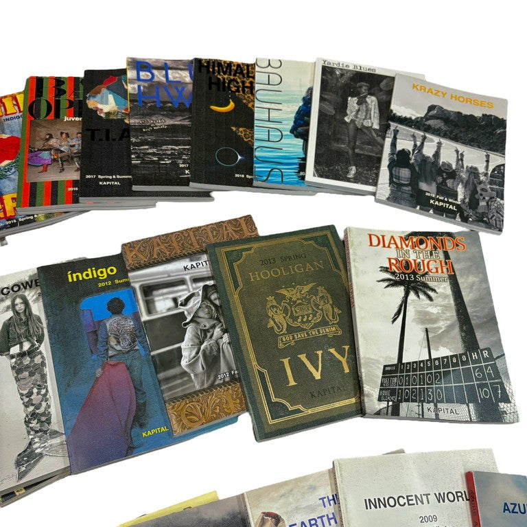 KAPITALのオフィシャルカタログ40冊まとめの入荷。2005年から2019AWまでを38冊に加え、サブカタログ2冊の計40冊となっております。収録内容は出品画像よりお確かめ下さい。こちらバラ売り対応が不可となっておりますこと予めご了承ください。所々使用感は感じられますが、問題なく閲覧して頂けます。