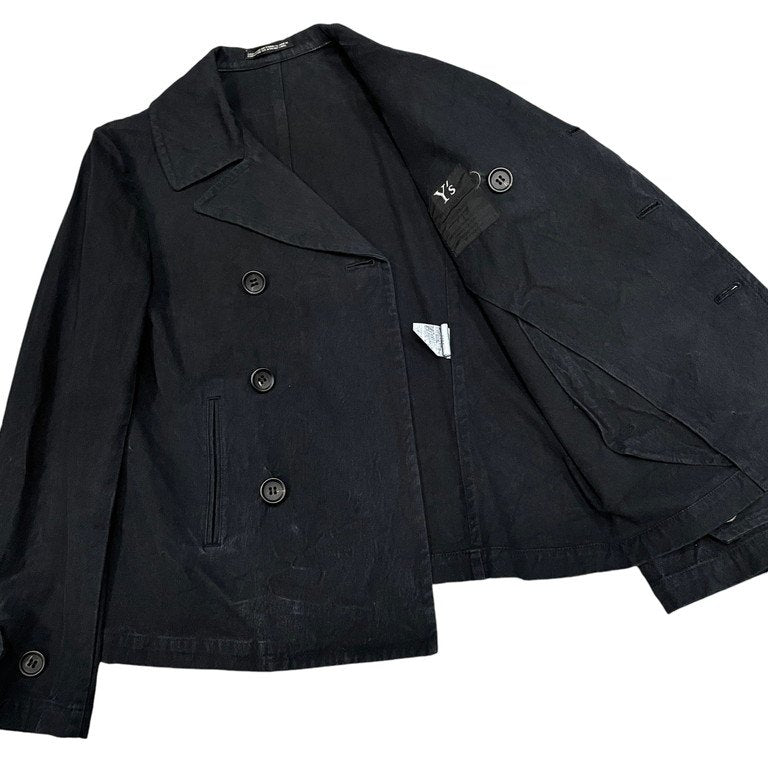 キャンバスコットン製品染めダブルブレストジャケット Pコート ブルゾン アウター Yohji Yamamoto Femme ヨウジヤマモトファム ワイズ レディース
