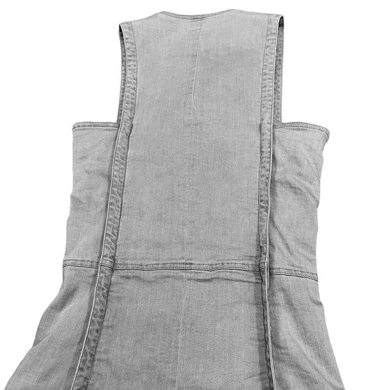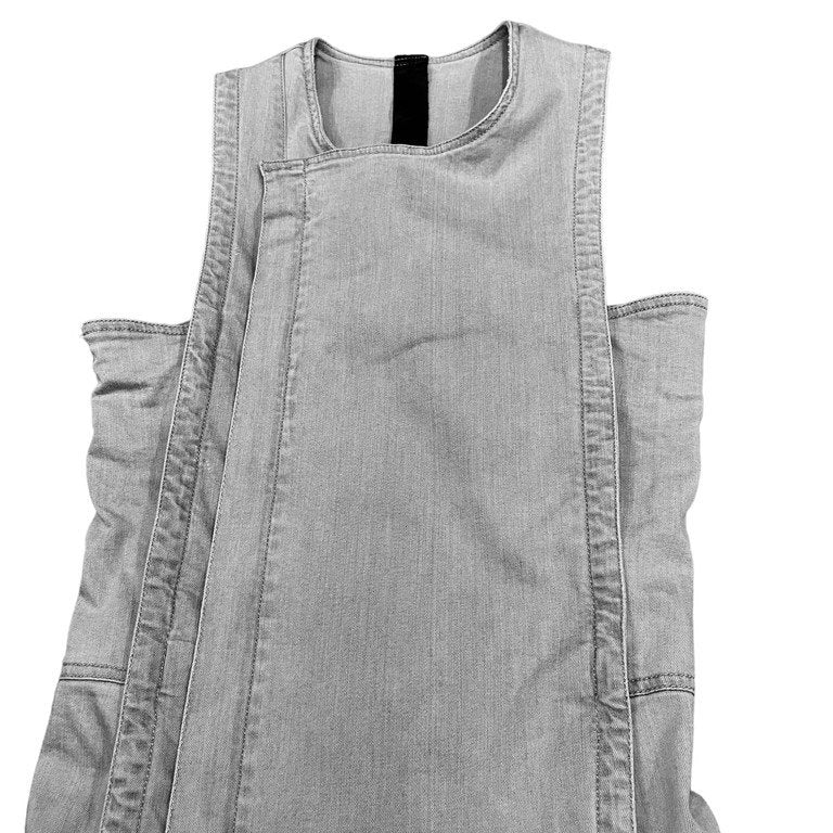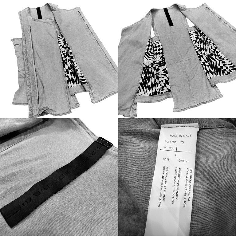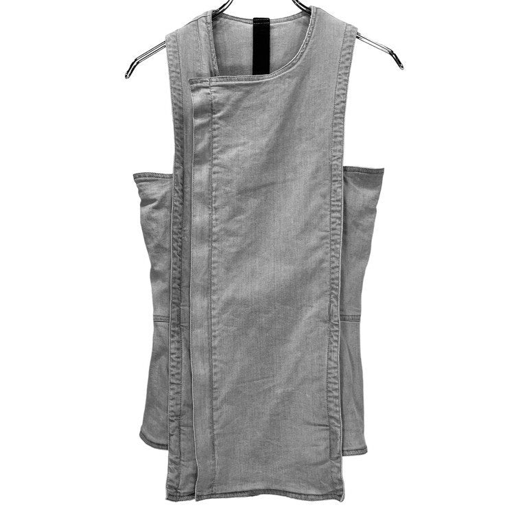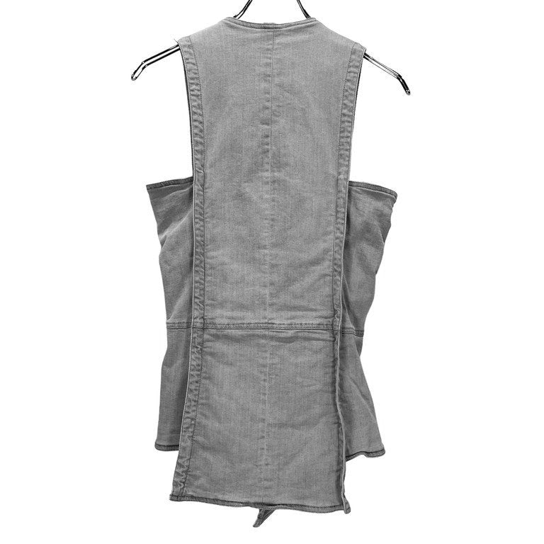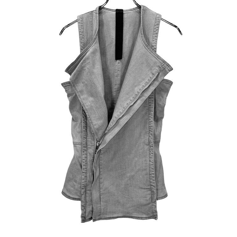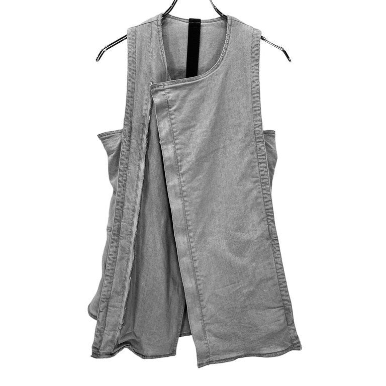 シルクライニンググレーデニムノースリーブジップアップベスト ノーカラー ジャケット アウター