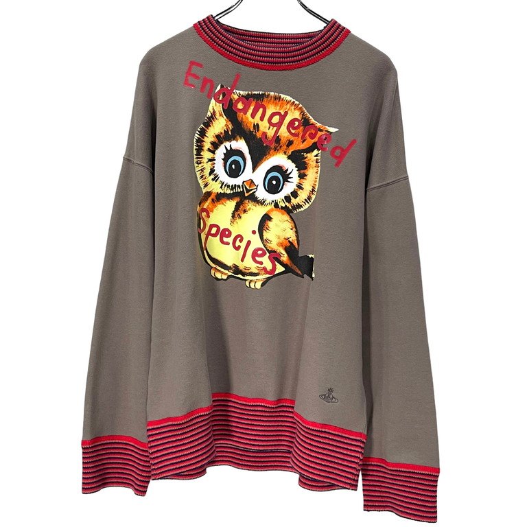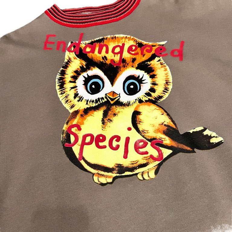 20AW ENDANGERED SPECIES OWL SWEAT SHIRT フクロウプリントリブ切替スウェットシャツ トップス