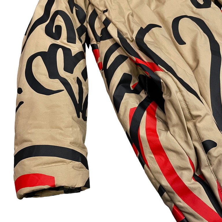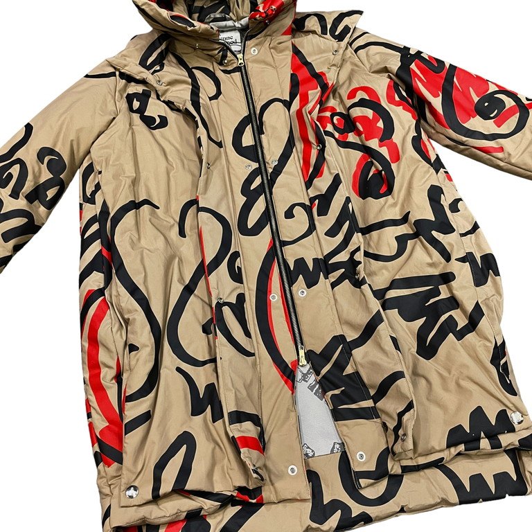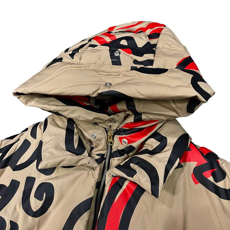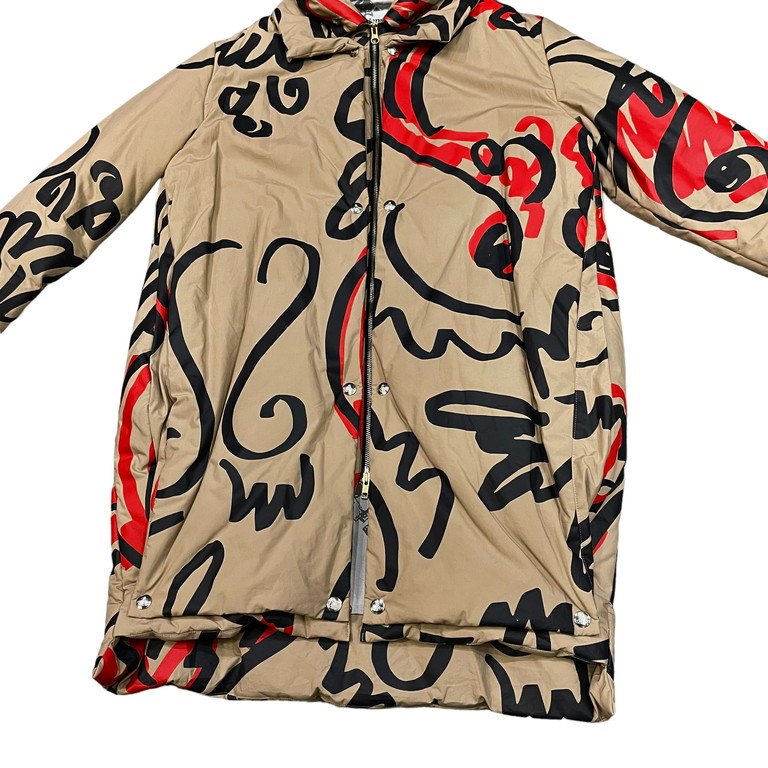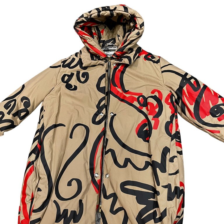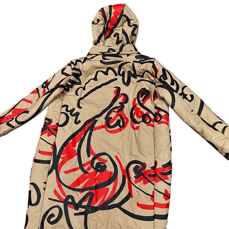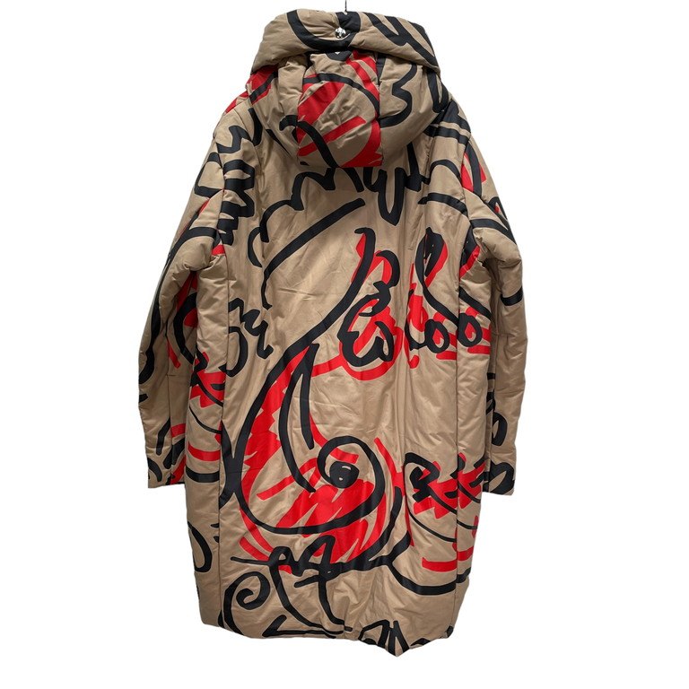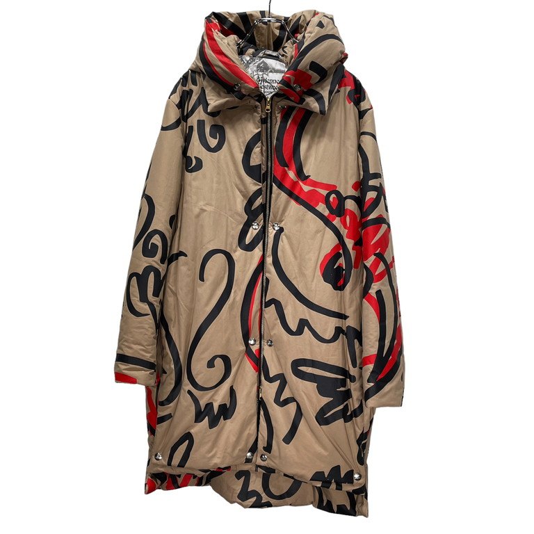 18AW 総柄プリントフロントレイヤード中綿フーデッドロングコート ジャケット ブルゾン