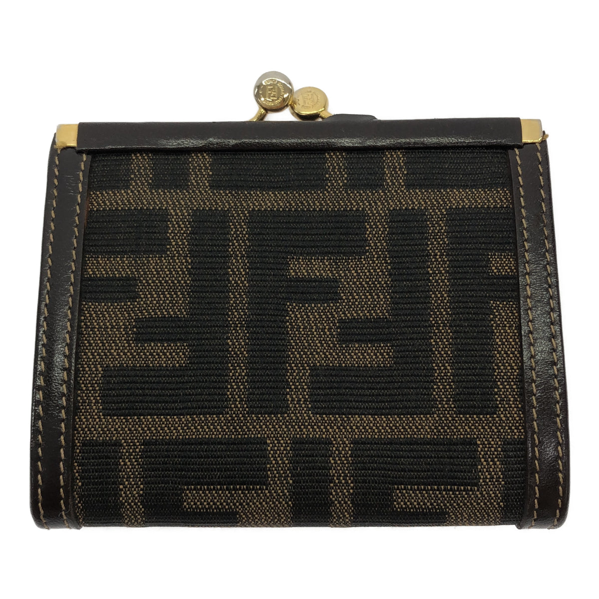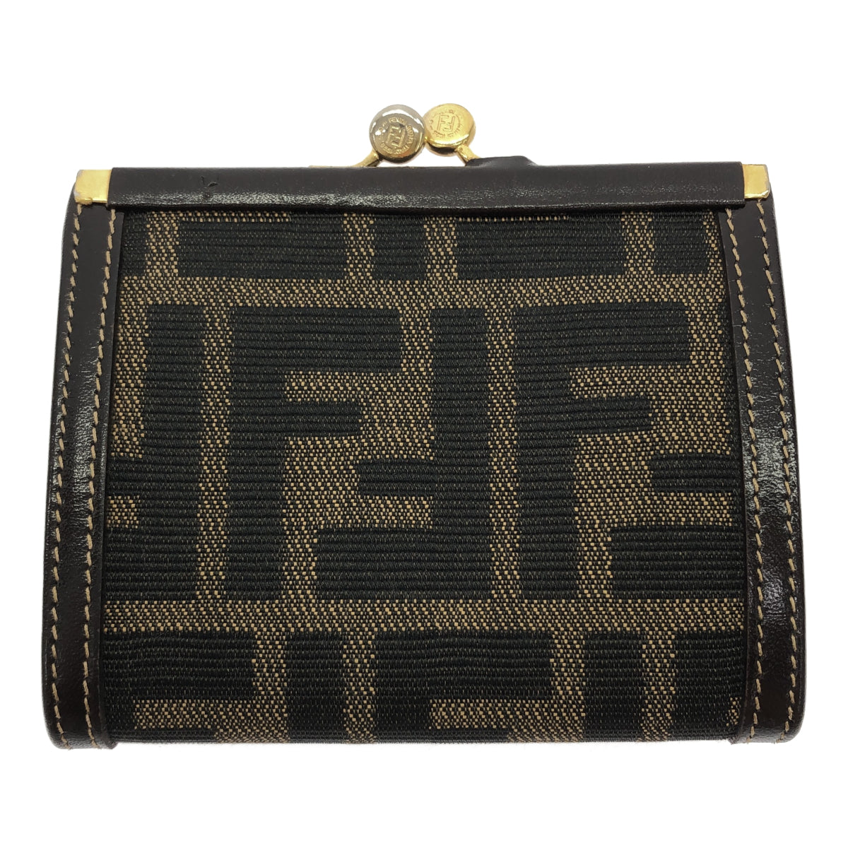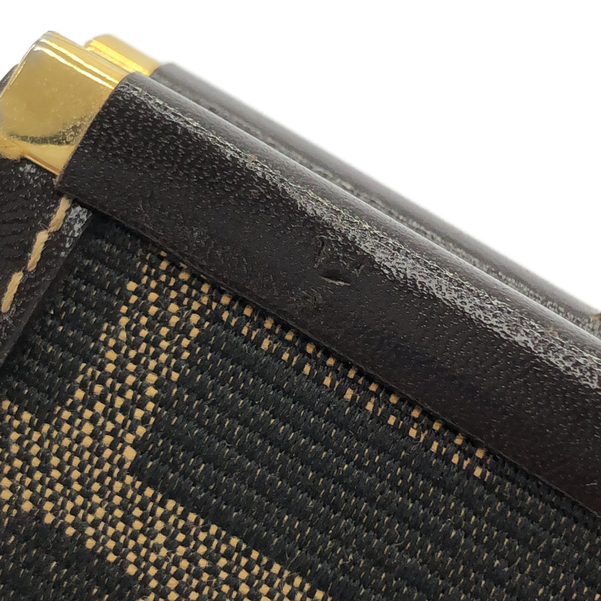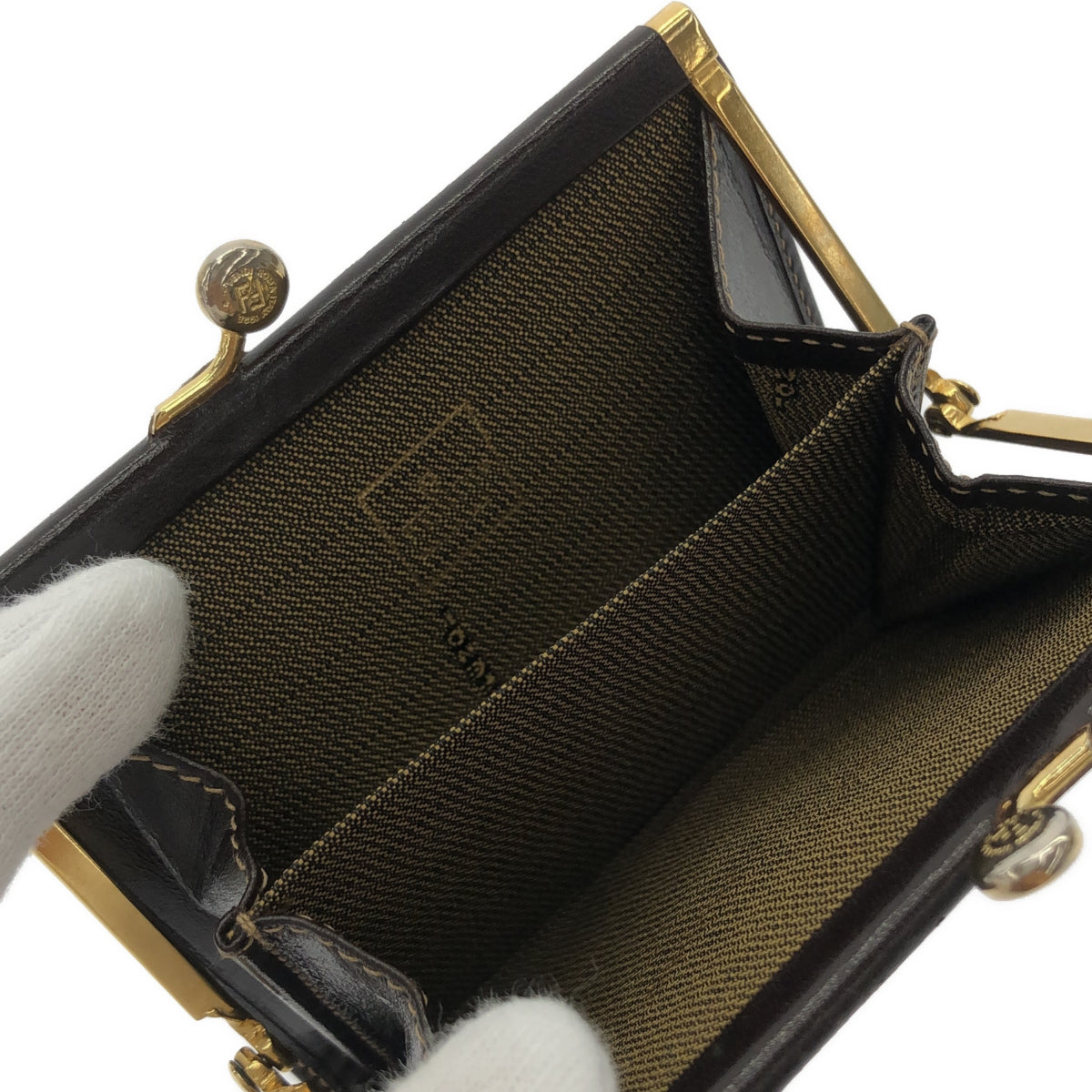 フェンディのガマ口コインケースは、ブラウンのレザーとキャンバス素材が織りなす、上品な雰囲気が魅力です。ガマ口タイプなので、開閉が簡単で、小銭をスムーズに取り出すことができます。コンパクトながらも必要な小銭をしっかりと収納できる、実用的なアイテムです。状態はCランクで、全体的に使用感があり金具の部分は小傷とくすみがあり所々小傷がありますが、普段使いには問題なくご使用いただけます。