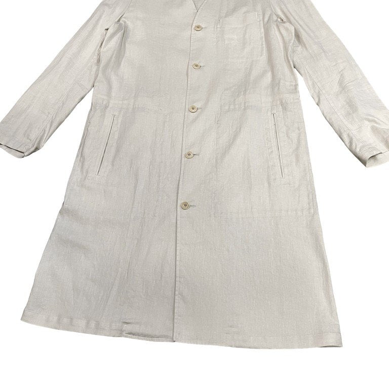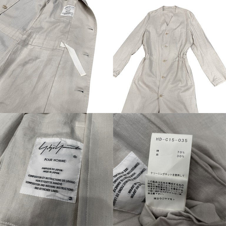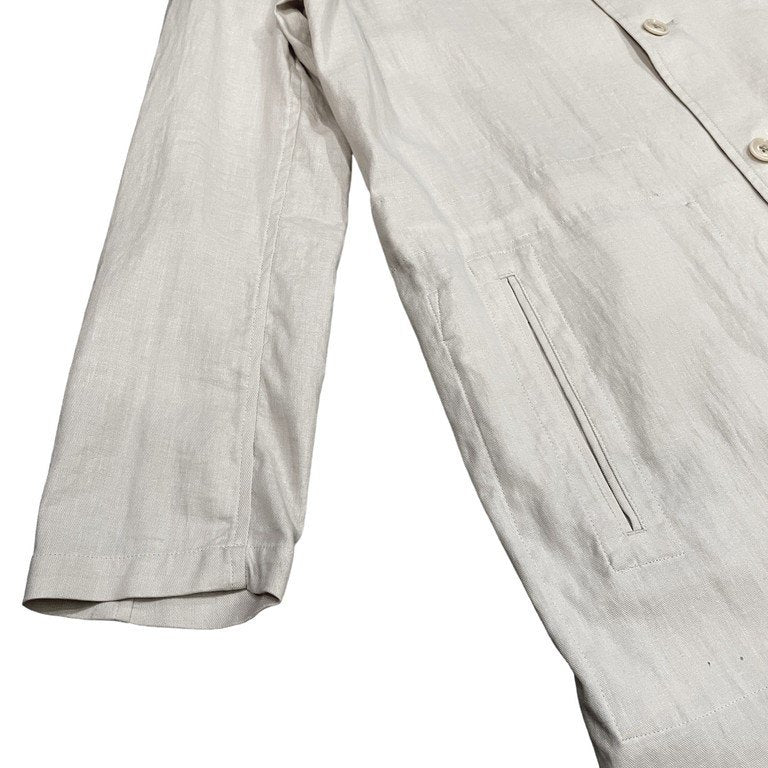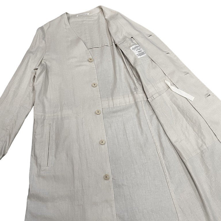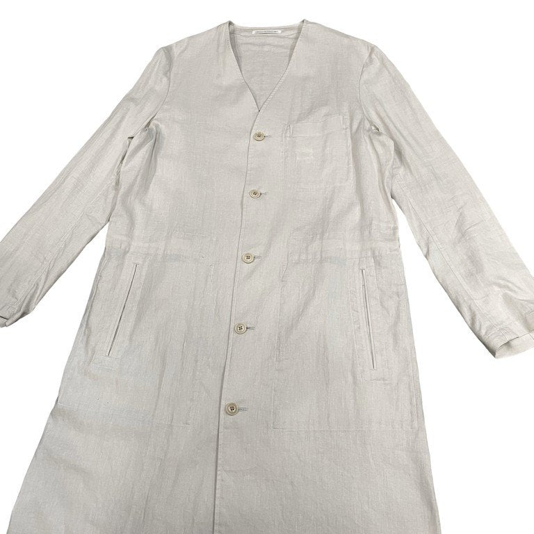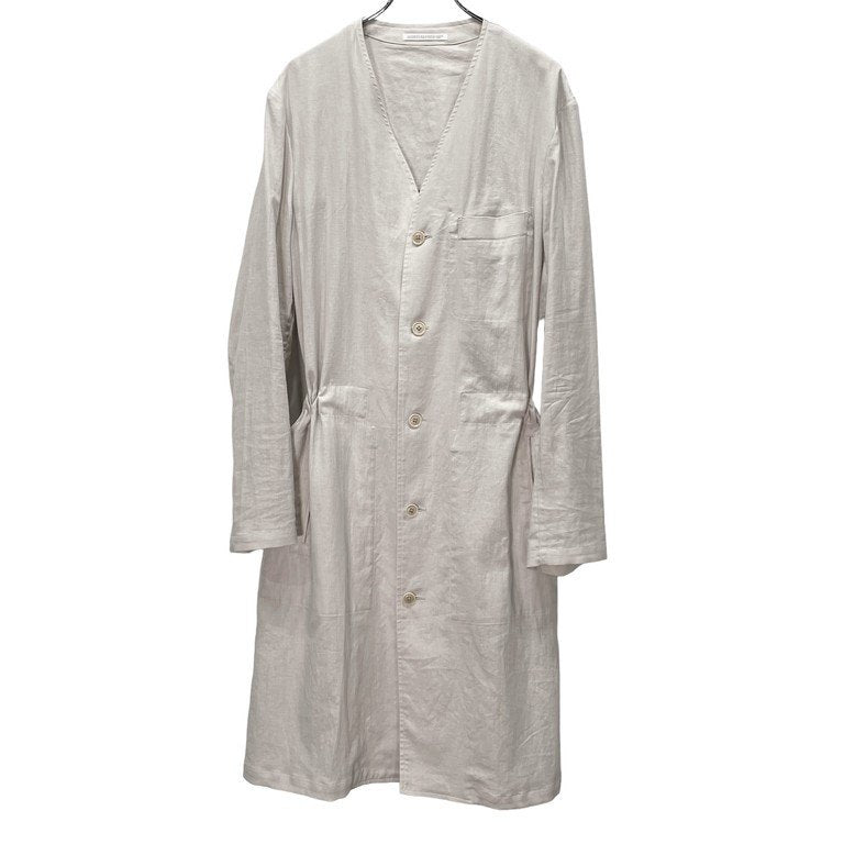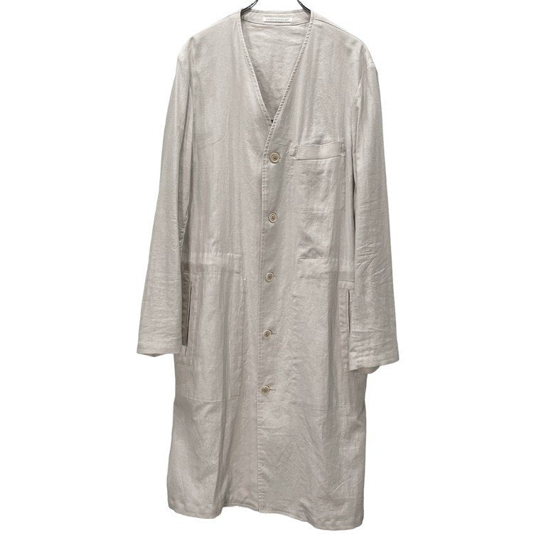 17SS コットンリネンギャバジンカラーレスロングコート ノーカラーロングジャケット ブルゾン アウター Archive ヨウジヤマモトプールオム メンズ