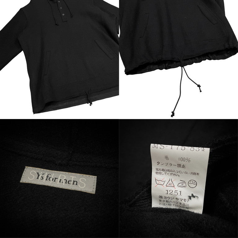 ウールモッサニットスリーブプルオーバーパーカー Archive 90s フーディ コート ジャケット アウター トップス Yohji Yamamoto Pour Homme ヨウジヤマモトプールオム ワイズフォーメン メンズ