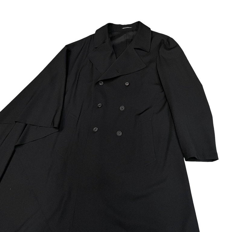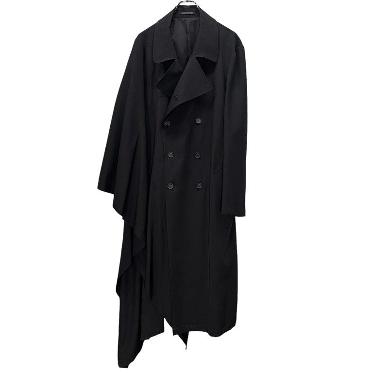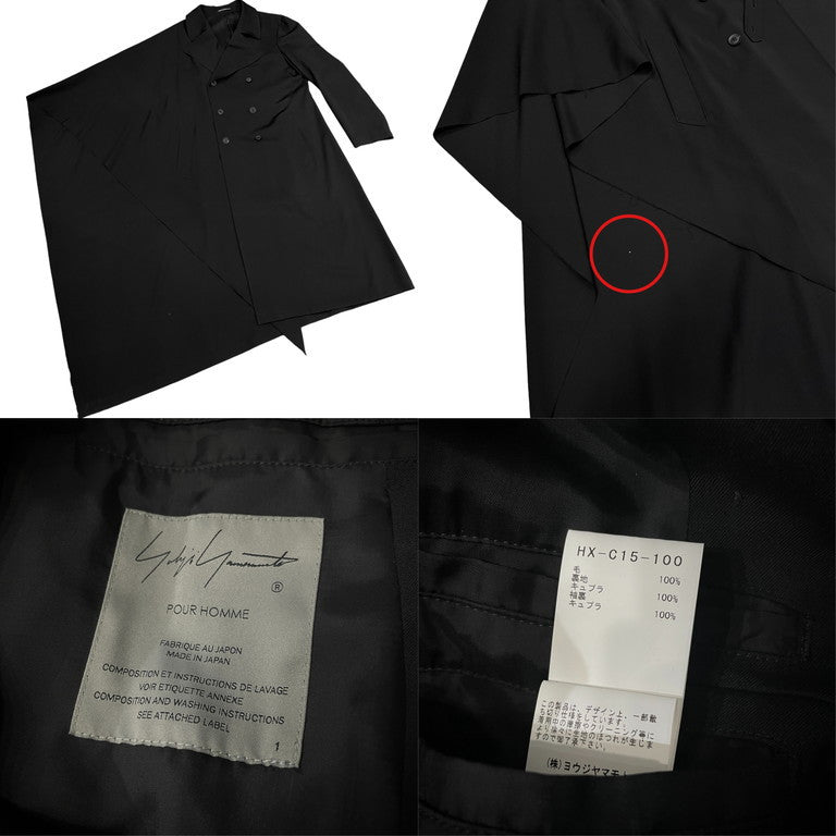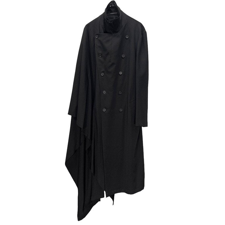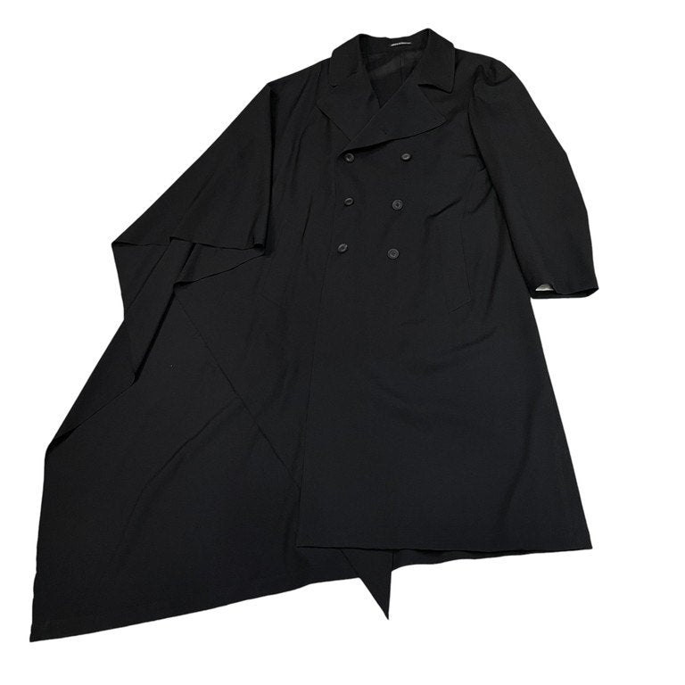 21AW ウールギャバジンアシンメトリー片袖ケープカットオフダブルブレストコート 右マントギャバWCT 裁ち切り ジャケット アウター HX-C15-100 定価160,600円 ヨウジヤマモトプールオム メンズ