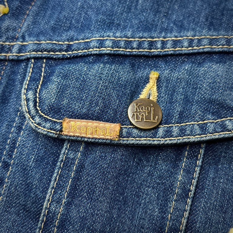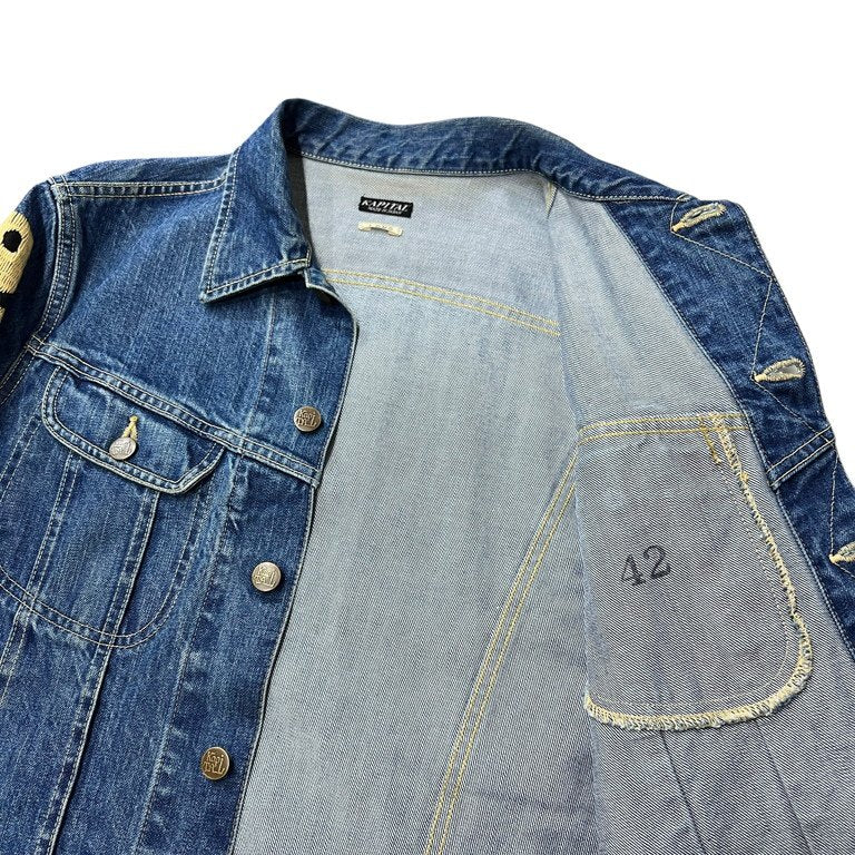 19SS 14ozデニム ウエスターナー LONG ウォッシュ加工スマイリーロゴ刺繍デニムトラッカージャケット スマイル ブルゾン アウター Archive Size 42 キャピタル メンズ