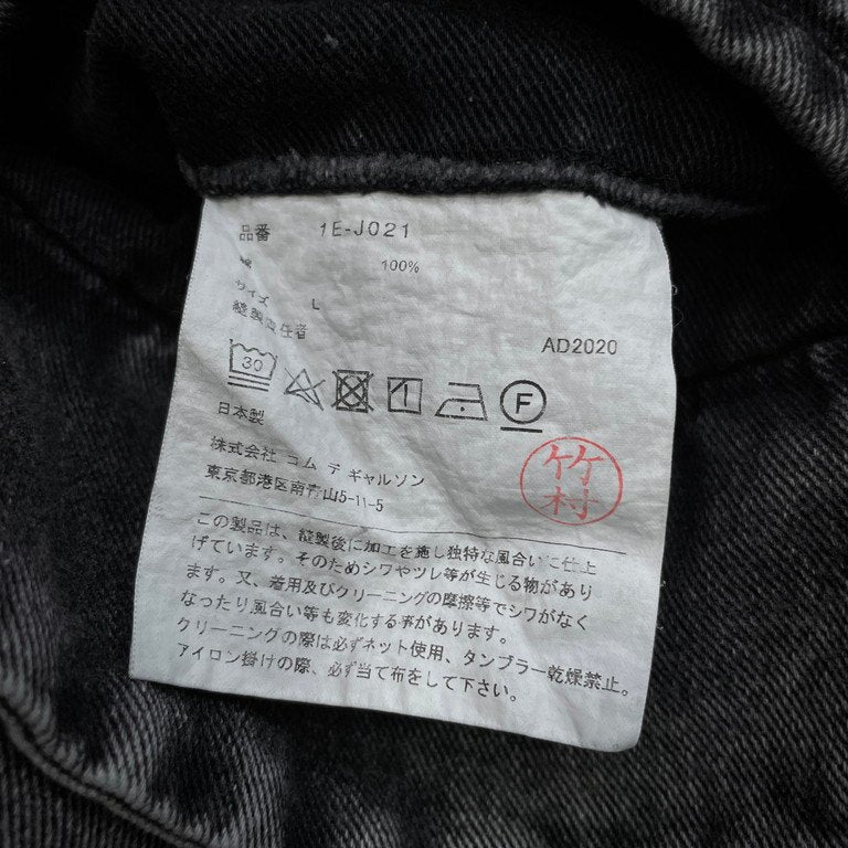 20SS ケミカルウォッシュブラックデニム4ボタンテーラードジャケット ブルゾン スタンドカラー フィッシュマウスラペル 1E-J021 ブラック コムデギャルソン メンズ