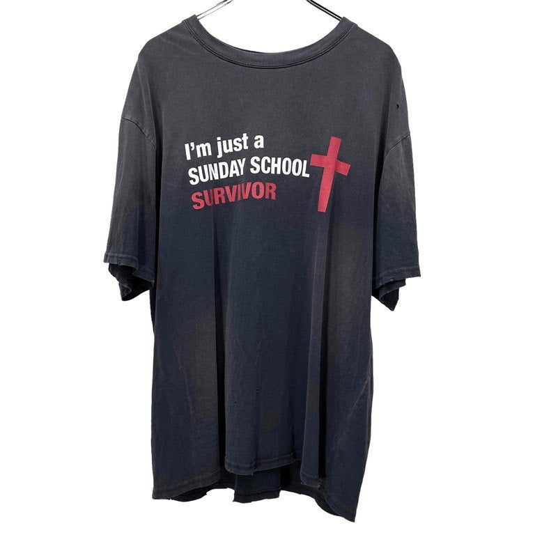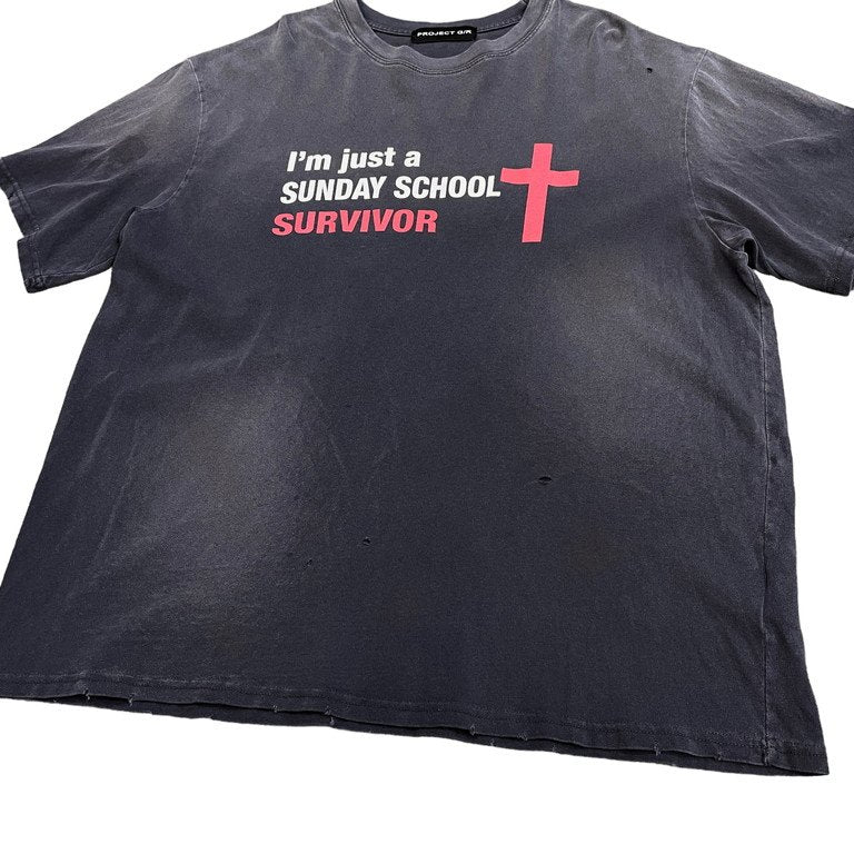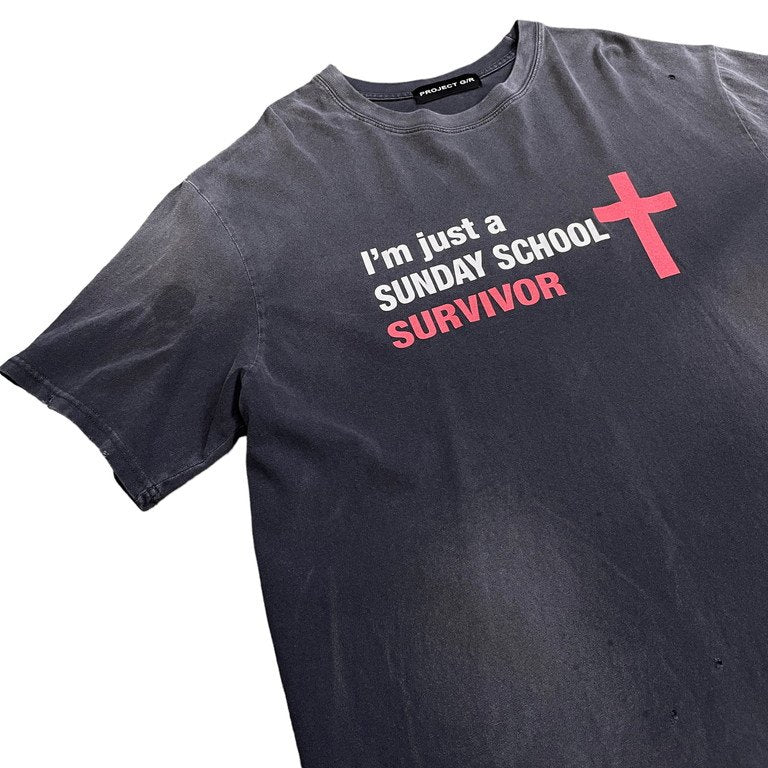 SUNDAY SCHOOL WASHED T-SHIRT ダメージ加工プリントオーバーサイズクルーネックTシャツ カットソー Tee プロジェクトジーアール メンズ