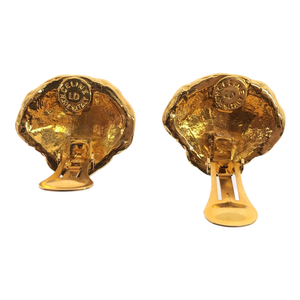 セリーヌのイヤリングは、シェルモチーフが特徴的なアクセサリーです。ゴールドカラーのメッキ素材が、エレガントな雰囲気を醸し出します。普段の装いにプラスするだけで、ワンランク上のお洒落を楽しめます。状態はCランクで全体的に使用感があるのと小傷とくすみがございますが、シェルデザインが目を惹く、セリーヌらしい逸品です。
