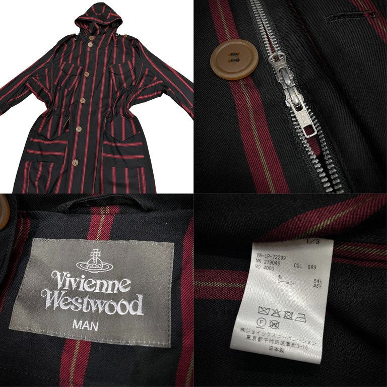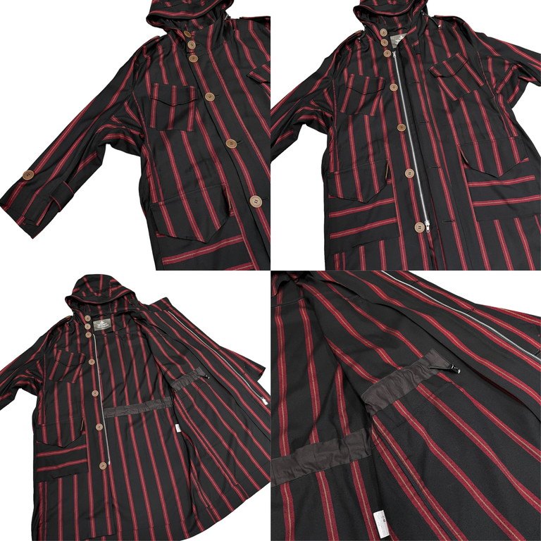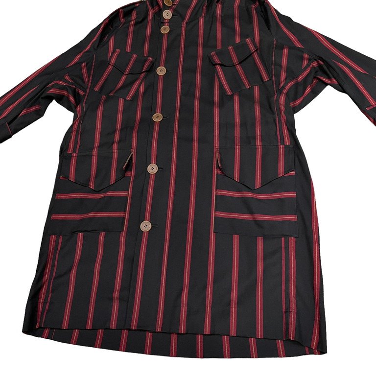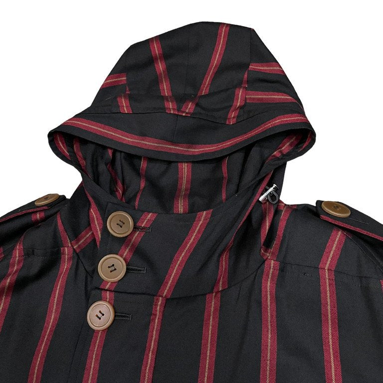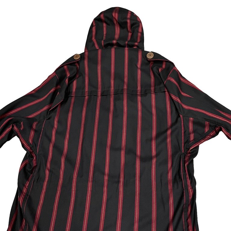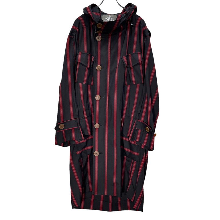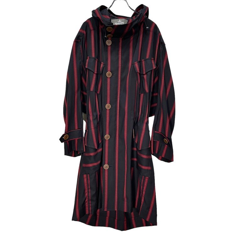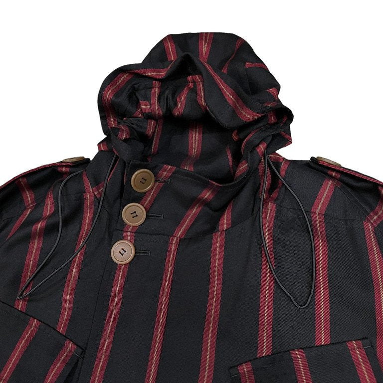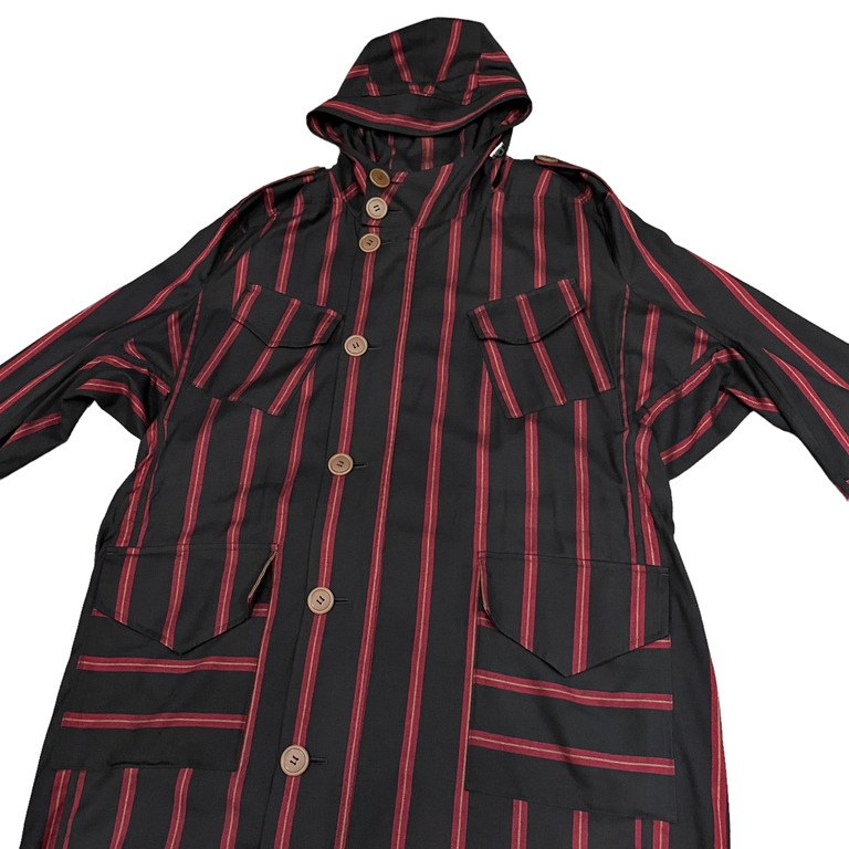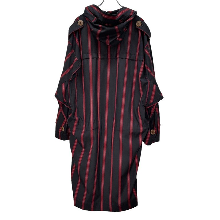 22SS ウールレーヨンストライプドルマンハイネックフーデッドロングコート ジャケット ブルゾン アウター 変形