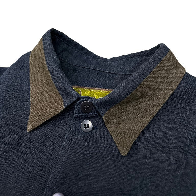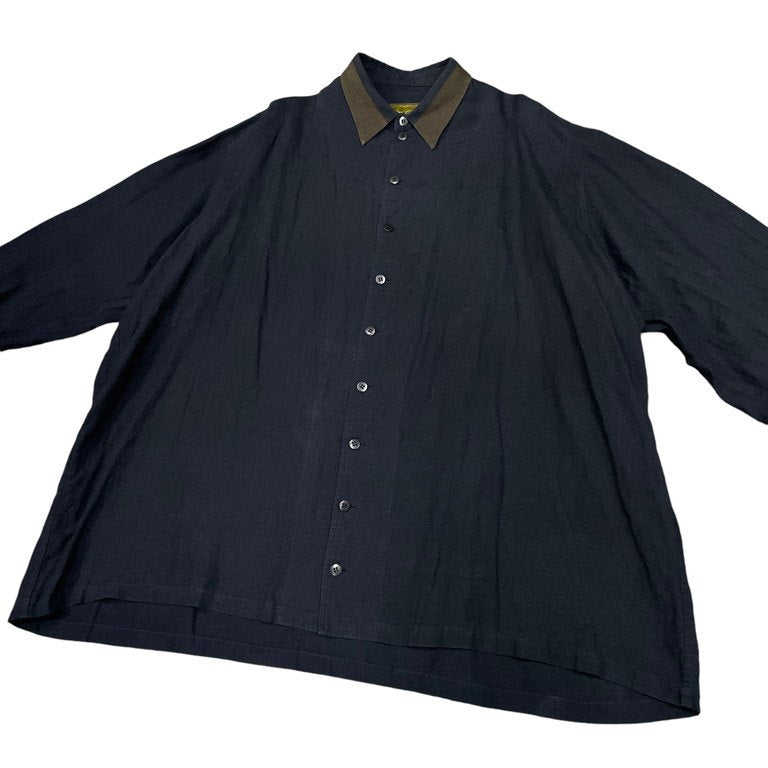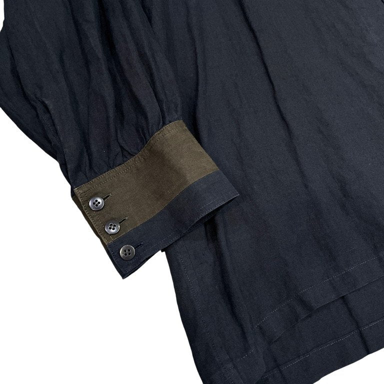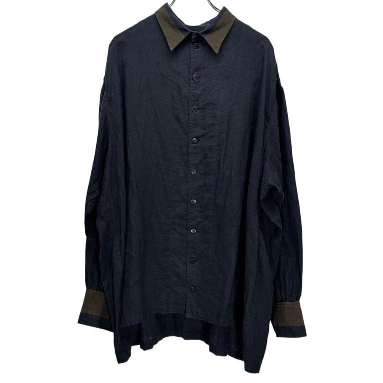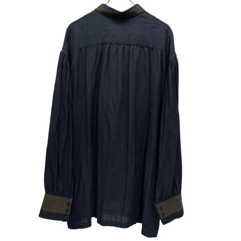 リネンオーバーサイズクレリックギャザーシャツ Archive 90s 00s 切替 ブラウス バイカラー ツートーン トップス クリストファーネメス メンズ レディース ユニセックス
